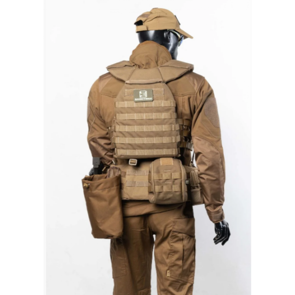 Данная разгрузочная система предусматривает возможность установки дополнительного мягкого броне-пакета с СВМПЭ по 1, 1А или 2 класса баллистического по ГОСТ 4103 В 2002.