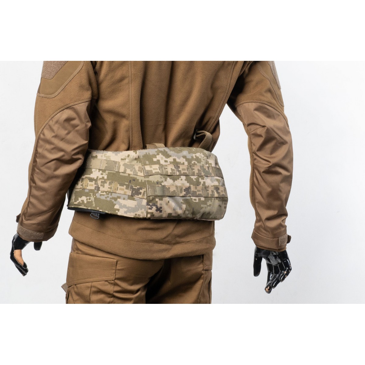Многочисленное снаряжение и инвентарь, которые носят на себе военнослужащие, серьезно нагружают спину и ускоряют усталость. Поэтому такой полезной является ременно-плечевая система. Она служит платформой для фиксации подсумков и переносит нагрузку, которая предназначалась для плеч и позвоночника, на таз и ноги. Именно с заботой о здоровье и комфорте воинов «Баллистика» разработала разгрузочный пояс «Черсел». Внимание! Лямки входят в комплектацию РПС, поэтому покупать их отдельно нет нужды. Цвет комплектных лямок может изменяться в зависимости от наличия на складе. Особенности ременно-плечевой системы «Черсел» Ременно-плечевая система в размере L рассчитана на объем бедер 80-110 см. К другим характеристикам изделия относятся следующие: Для производства пояса используется прочная, износостойкая ткань Cordura 1000D, которая выдерживает сложные условия эксплуатации – неблагоприятные погодные условия, большой вес снаряжения, частые механические повреждения. Жесткий каркас предотвращает прокручивание пояса под нагрузкой. Анатомическая форма и система быстрой подтяжки в комплексе позволяют использовать пояс даже без плечевых лямок. Три ряда ячеек MOLLE по всей внешней поверхности позволяют надежно закрепить большое количество вспомогательного снаряжения. Упругий демпфер, покрытый 3D-сеткой, обеспечивает удобную посадку и эффективную вентиляцию, а следовательно, комфорт при длительном ношении. Кроме того, мягкая основа предотвращает натирание, пережатие кожи и скольжение пояса по одежде. РПС имеет отсек для установки мягкого бронепакета из СВМПЭ по 1-му или 2-му классу баллистической защиты согласно ДСТУ 8782:2018. Благодаря ему значительно увеличивается площадь защиты от поражения осколками, которая достигает 10 дм². Лямки из ременной стропы крепятся к поясу на четыре двухщелевые пряжки, которые позволяют отрегулировать их длину в соответствии с телосложением воина. Цвет лямок можно выбрать по цвету РПС – олива, мультика, койот, ММ-14, черный. Бойцы по достоинству оценили эргономичную конструкцию изделия, которая позволяет использовать его без плечевой системы. Более того, вырезы в РПС спереди позволяют свободно наклоняться, приседать, занимать лежачее положение и при этом не сковывают движений. Технические характеристики Вес чехла: 600 г. Вес бронепакетов по 1-м/2-м классу защиты: 650/830 г. Материал: нейлон (Cordura 1000D), 3D-сетка, полиамидная стропа 50 мм, пластик. Фурнитура: Ammolit Plus, Fastex-UA. Липучка: Velcro® Alfatex. Размер: M-L (80-110 см).Отзывы о РПС ременно-плечевая система "Черсел M" (ММ14 "Пиксель" | 80-110 см) ТМ Баллистика