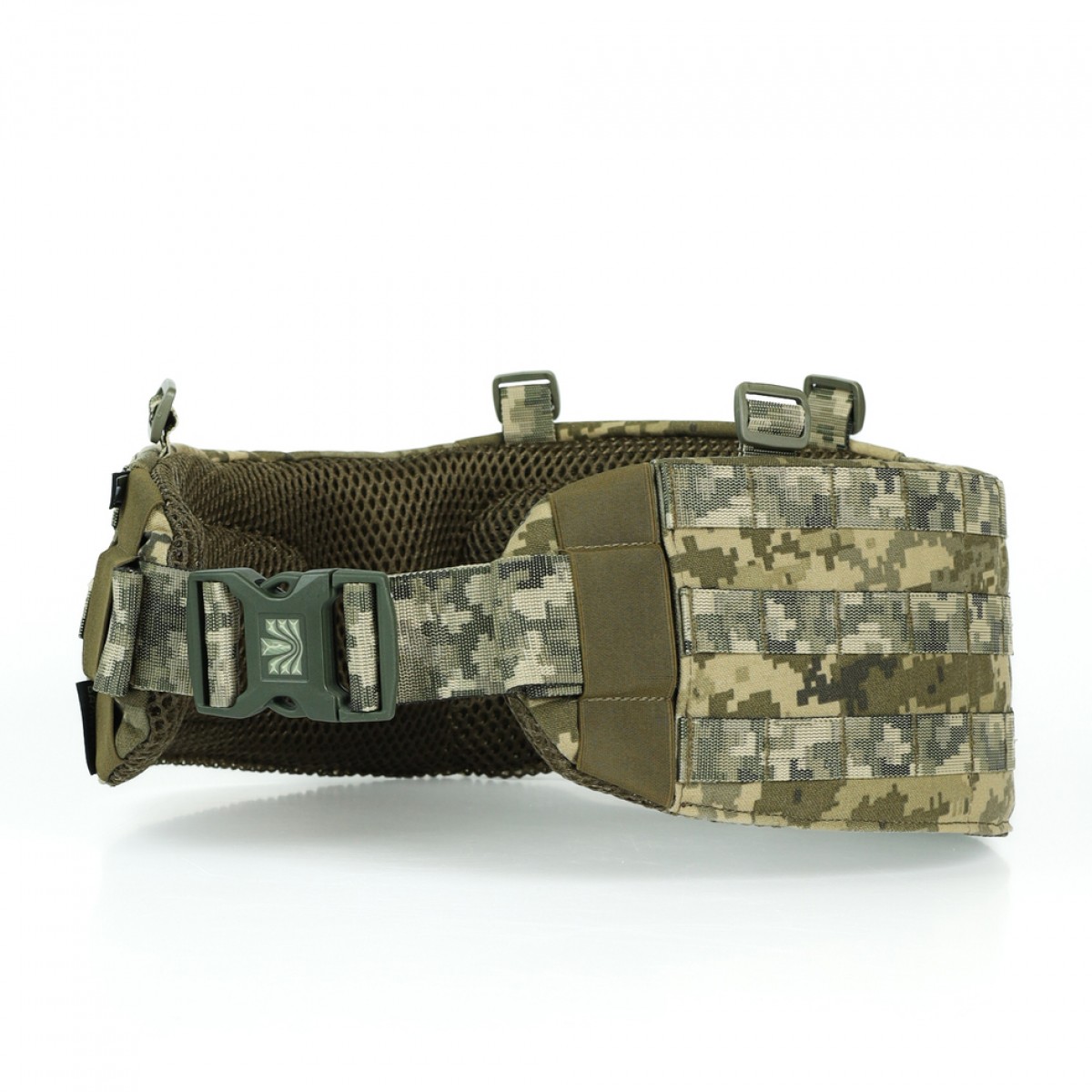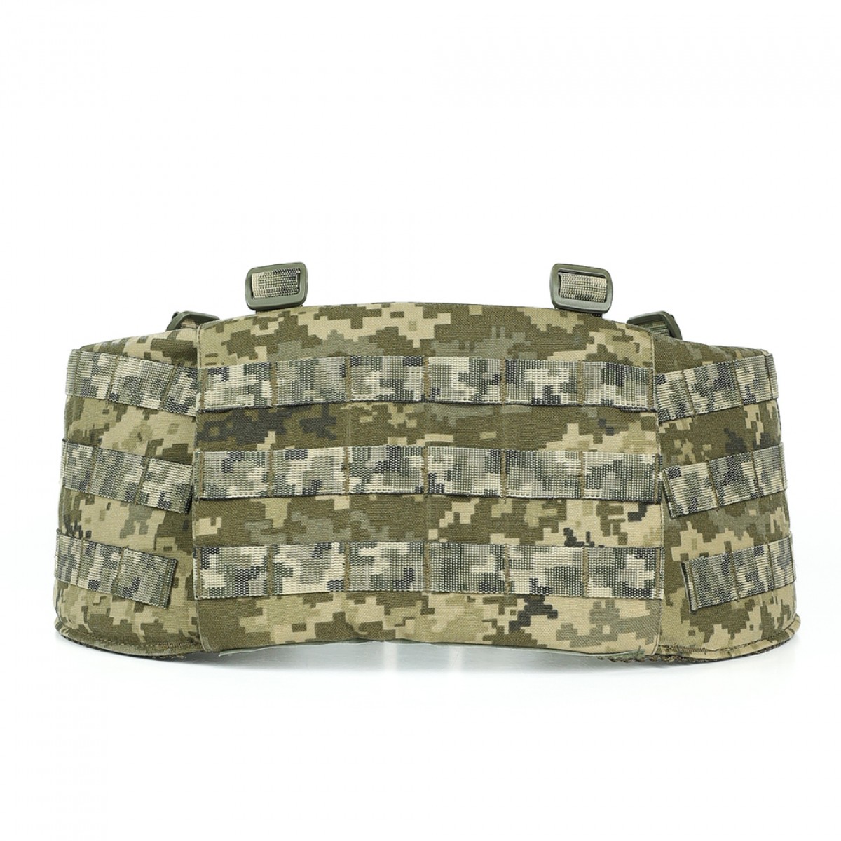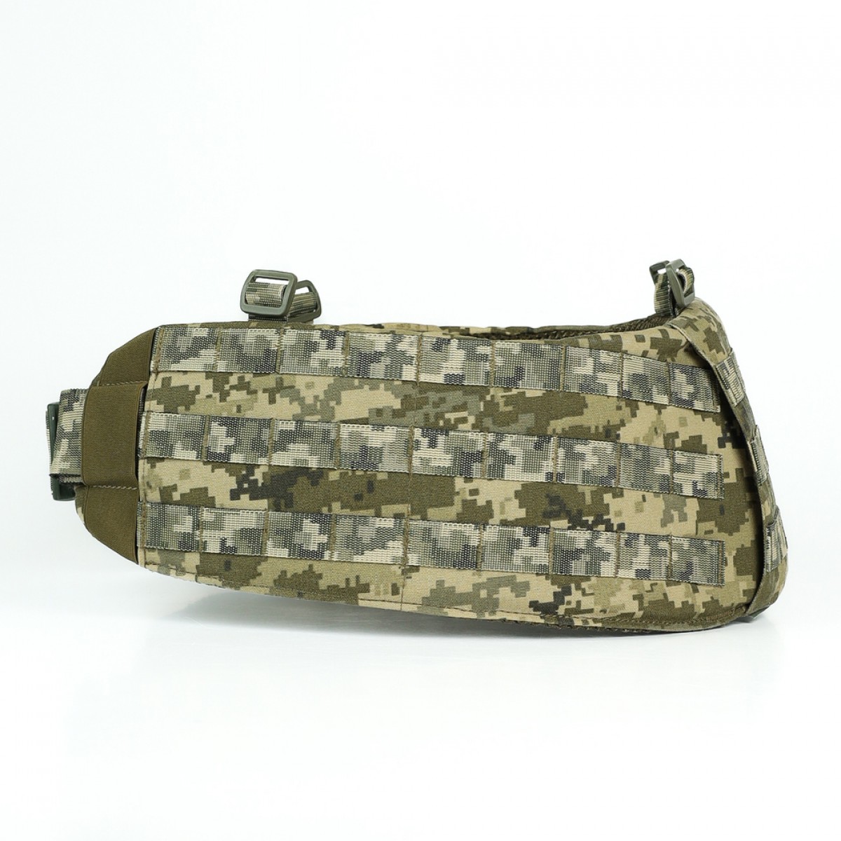 Разгрузочный пояс предназначен снимать нагрузку с плеч и спины и переносить ее на таз и ноги. Разработанный «Баллистикой» РПС «Черсел» можно использовать автономно или с плечевыми лямками, которые служат дополнительной опорой и обеспечивают равновесие во время ношения. К системе крепится значительная часть необходимого на поле боя снаряжения, и в случае необходимости от нее легко избавиться без ущерба для безопасности. Внимание! Лямки входят в комплектацию РПС, поэтому покупать их отдельно нет нужды. Цвет комплектных лямок может изменяться в зависимости от наличия на складе. Особенности ременно-плечевой системы «Черсел» в размере XL рассчитан на объем бедер 100-140 см. Подбор РПС индивидуален и зависит от анатомических параметров покупателя и его личного комфорта. Пояс большего размера обеспечивает большую площадь защиты и позволяет навешивать больше снаряжения. Но, если размер выбран неправильно, при ношении может возникать существенный дискомфорт. К другим характеристикам изделия относятся следующие: Жесткий каркас, который предотвращает прокручивание пояса под нагрузкой. Анатомическая форма и система быстрой подтяжки, что в комплексе позволяет использовать РПС без верхних лямок. Без них нагрузка полностью переносится со спины на таз. 3D-сетка, которой покрыта вся внутренняя поверхность РПС, обеспечивает вентиляцию и удобное прилегание к телу. Под ней помещена демпферная основа с рельефными подушечками, которые создают вентиляционные каналы для отвода тепла и обеспечивают более комфортную эксплуатацию. Благодаря этому при ношении БК пояс не пережимает и не натирает кожу. Вспомогательное снаряжение навешивается на три ряда ячеек MOLLE, изготовленных из полиамидной стропы. Возможность дополнительно установить баллистическую защиту из СВМПЭ по 1-му или 2-му классу баллистической защиты согласно ДСТУ 8782:2018. Благодаря этому площадь защиты от поражения осколками увеличивается на 12 дм². РПС комплектуется лямками из ременной стропы 50 мм, которые фиксируются на четыре двухщелевые пряжки, которые, в свою очередь, позволяют настроить длину. Цвет лямок подбирается в соответствии с цветом РПС (олива, койот, мультикам, ММ-14, черный). Бойцы по достоинству оценили эргономичную посадку, которая позволяет использовать пояс без плечевой системы, и передние вырезы в РПС, благодаря которым можно свободно наклоняться, приседать и т. д. без ощущения скованности. Технические характеристики Вес чехла: 780 г. Вес бронепакетов по 1-м/2-м классу защиты: 750/1030 г. Материал: нейлон (Cordura 1000D), 3D-сетка, стропа, пластик. Фурнитура: Ammolit Plus, Fastex-UA. Липучка: Velcro® Alfatex. Размер: XL (100-140 см).Основные характеристики РПС ременно-плечевая система "Черсел XL" (ММ14 "Пиксель" |100-130 см) ТМ Баллистика