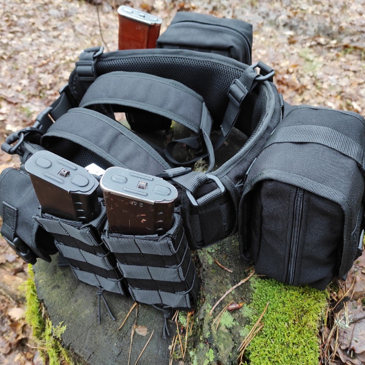 - Фиксация – Плечевые лямки тоже имеют систему MOLLE для небольших итогов. Плечевая часть крепится пластиковыми пряжками, в центральном соединении была вставлена кнопка для быстрого снятия, лямки соединяются между собой ручкой, в экстренной ситуации, при необходимости, ею можно воспользоваться не снимая сам РПС.