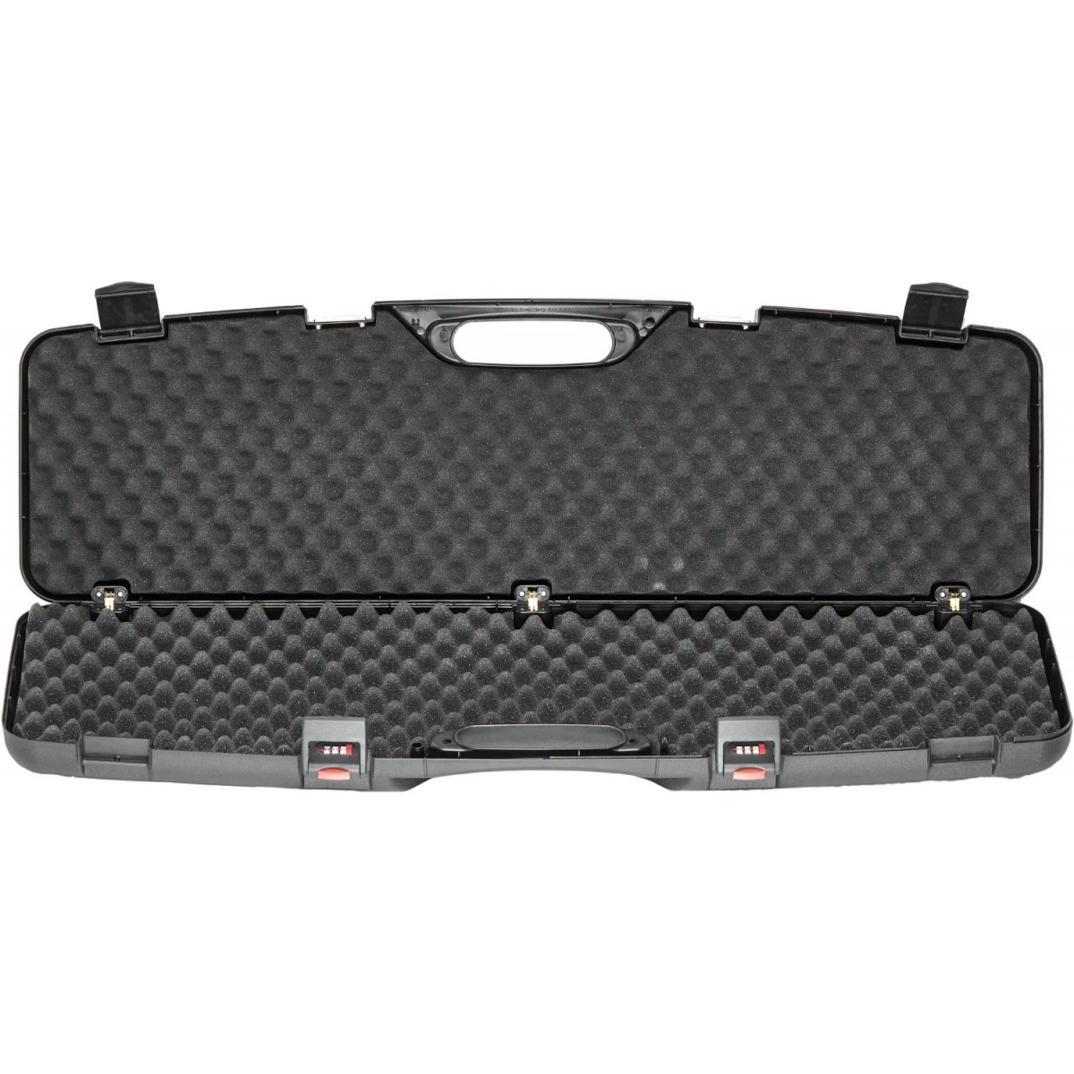 Оружейные кейсы Megaline из прочного пластика производятся для разных типов переломного оружия, штуцеров, оптики и пистолетов - в зависимости од модели. Кейс плотно запирается на пластиковые защёлки или на защёлки с кодовыми замками. Имеется отверстие для запирания на дополнительный внешний замок. Металлические петли утоплены внутрь, что значительно увеличивает надёжность запирания и срок эксплуатации. Внутренняя часть кейса покрыта специальным маслостойким поролоном. Такое покрытие исключает смещение оружия, патронов, оптики, аксессуаров в закрытом кейсе и сохраняет содержимое кейса от потёртостей и вмятин при транспортировке. Удобная ручка не натирает руку при длительной переноске.