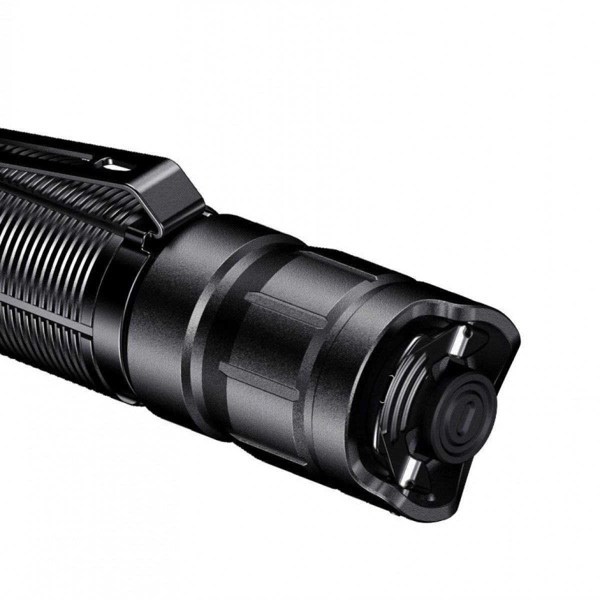 Внутренний пружинный контакт с обеих сторон корпуса позволяет использовать фонарик как фонарь на оружие.