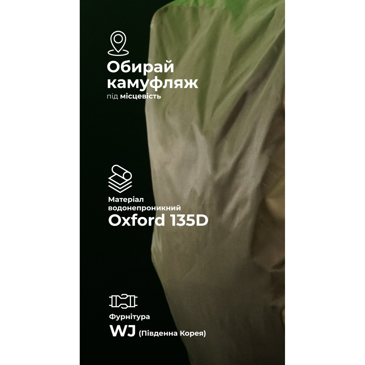 Компактный универсальный кавер, который защитит рюкзак от влаги, грязи и мелких повреждений. ✅ Ключевые преимущества Подходит для рюкзаков объемом до 55 л Надежно держится благодаря шоккорду, эластичной ленте и крючку Защищает рюкзак от царапин и износа Маскирует под выбранный камуфляж Эффективный против осадков и грязи Бесшовная конструкция снижает риск разрывов и проникновения влаги Не занимает много места среди снаряжения Описание товара Объем до 55 л позволяет использовать кавер для покрытия рюкзаков большого размера, например «Зоряника» или «Гамуза». Быстро и надежно закрепляется на рюкзаке с помощью: ✔️ шоккорда с фиксатором, который плотно стягивает кавер по периметру и предотвращает соскальзывание; ✔️ эластичной ленты, обеспечивающей дополнительное прилегание; ✔️ крючка, который фиксирует кавер в конкретной точке, чтобы он не сдвигался во время движения. Забирает на себя механические повреждения (царапины, трение) и помогает рюкзаку дольше сохранять первоначальный вид. Позволяет замаскировать рюкзак в соответствующем паттерне. Плотная водонепроницаемая ткань защищает рюкзак и его содержимое от интенсивного дождя, мокрого снега, брызг грязи и т. д. В сложенном виде кавер занимает минимум места и легко помещается в карман рюкзака или подсумок. ❓ Часто задаваемые вопросы Подходит ли кавер для рюкзаков с объемом до 30 л, или он будет слишком большим? Кавер лучше садится на рюкзаки объемом до 55 л, а на меньших (до 30 л) может немного свисать. Однако благодаря шоккорду его можно плотно стянуть, чтобы он не спадал. Есть ли риск, что ветви сорвут кавер с рюкзака во время бега сквозь густую растительность? Риск минимален. Кавер изготовлен из гладкой, скользкой ткани без швов, а шоккорд, который теоретически может зацепиться, заведен на спинку рюкзака и надежно спрятан от веток. Благодаря чему обеспечивается водонепроницаемость кавера? Кавер выполнен из легкого, но крепкого материала Oxford 135D с водозащитным покрытием. Он отличается высокой износостойкостью, водостойкостью и ветрозащитой.Отзывы о Кавер на рюкзак до 55 литров (Койот) ТМ Баллистика