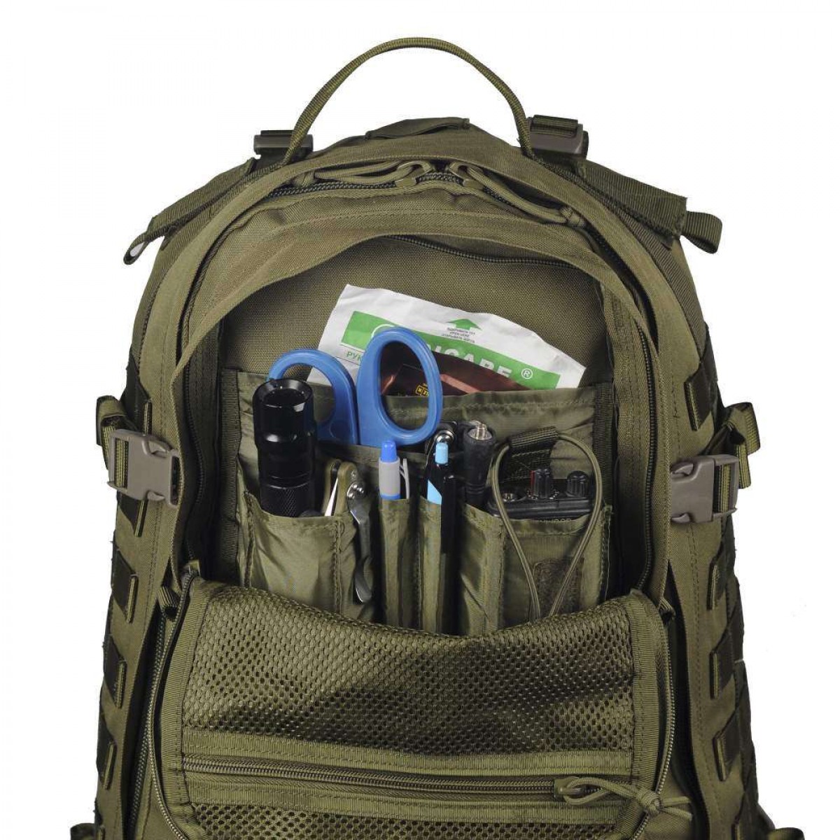 Рюкзак оборудован стропами MOLLE как с фронта, так и по бокам.