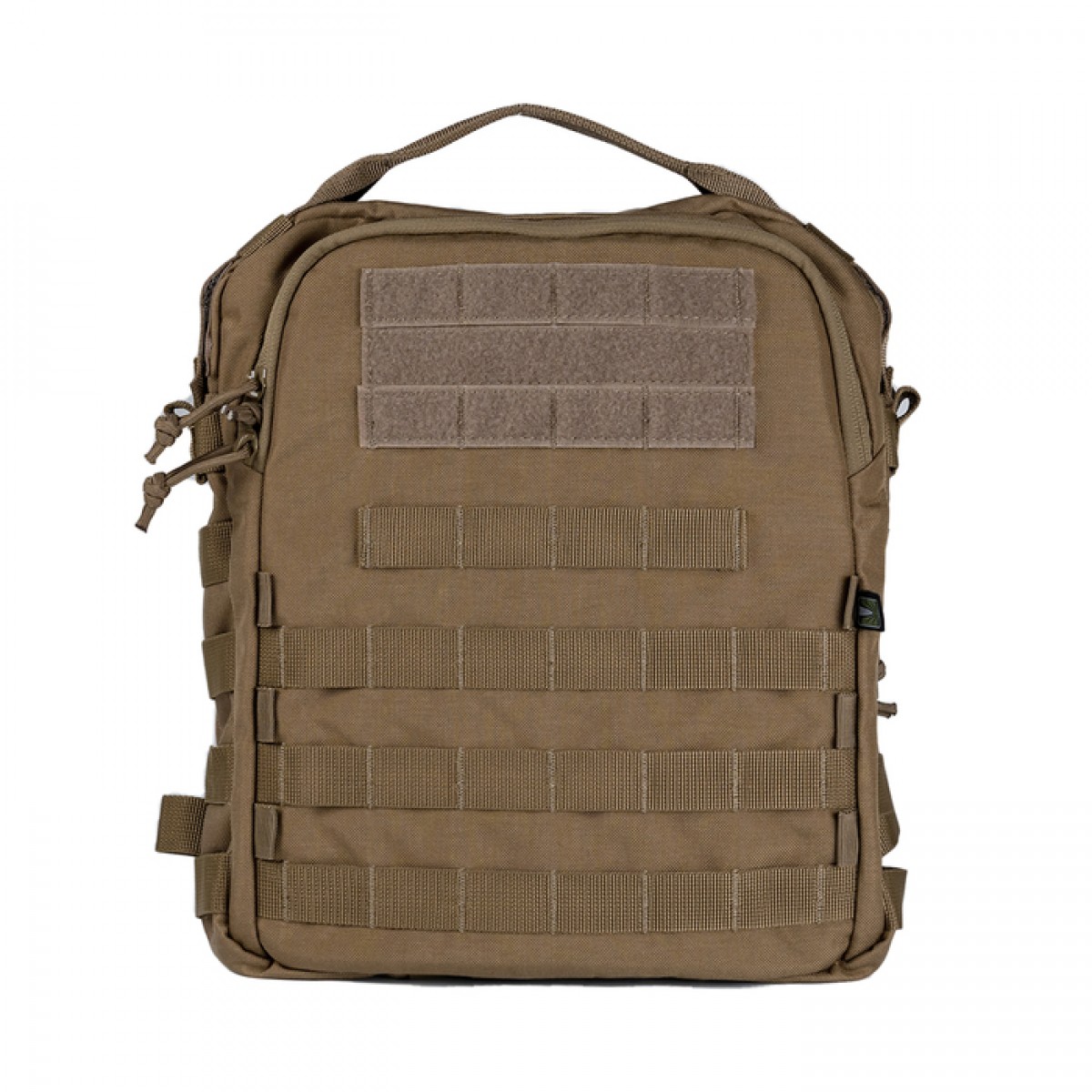 Удобный эргономичный рюкзак дает возможность перекидывать его со спины наперед для быстрого доступа к содержимому. Подходит для выполнения задач во время коротких рейдов и обеспечивает переноску всего необходимого. Несмотря на небольшой объем, предоставляет значительный функционал для размещения различного снаряжения – от гидратора до запасов БК. Особенности товара Рюкзак имеет плоскую форму, что делает его удобным при ношении как спереди, так и сзади. Он оснащен одним основным отделением, доступ к которому можно одновременно получить с передней и задней панелей. Изделие имеет четыре ремешка с фастексами для крепления к плитоноске или бронежилету. Два верхних шнуруются к стропам на плечевых лямках «Сармата» или М3 Pro/Lite. Нижние крепятся к ячейкам на камербандах, для этого на фастексах есть специальные отверстия. Длину ремешков можно отрегулировать, чтобы рюкзак не болтался во время движения. Если есть необходимость носить рюкзак на плечах, для лямок предусмотрены два косых крепления на задней стороне и стропы на ручке. Лямки в комплекте не идут. На задней стороне, а также на боковинах и дне рюкзака помещена система MOLLE, на которую можно подвесить дополнительное снаряжение. В два верхних ряда ячеек на задней панели интегрирована липучка велкро, на которую можно цеплять патчи. На передней стороне помещен один наружный карман (25×14 см), внутри которого нашита эластичная лента-органайзер. На самом кармане и сверху над ним помещены велкро-панели (12×5 см). Рюкзак имеет три внутренних кармана: Изнутри на передней панели – сетчатый с нижним доступом (16×12 см) и обычный непрозрачный (24×12 см), оба на молнии. На задней панели – карман под гидратор до 2 л (24×31 см). В нем есть два велкро-хлястика для крепления гидратора, а также отделение для демпфера из пенки, которое закрывается клапаном с велкро. Молния на кармане оснащена двумя бегунками, которые для закрытия расходятся в стороны. Ручка рюкзака с обоих краев оснащена клапанами с велкро, которые прикрывают отверстия для вывода шланга гидратора. По периметру рюкзака с обеих сторон и на дне вшиты петли, через которые можно продеть веревку или резинку для фиксации дополнительного инвентаря. На дне есть два люверса, которые способствуют вентиляции и предотвращают накопление конденсата. Видеообзор Технические характеристики Основной материал: Cordura 1000D. Фурнитура: WJ, YKK. Стропа: полиамид, 2,5; 3,5; 5 см. Вес: 620 г. Размер: 34×29×9 см. Объем: 9 л.Отзывы о Рюкзак штурмовой-перекидной (Койот)