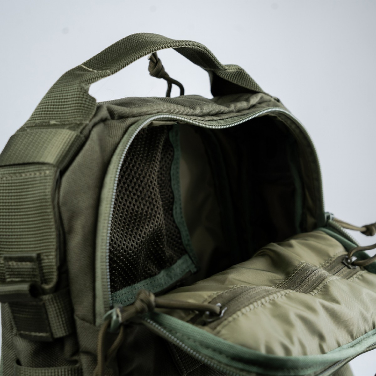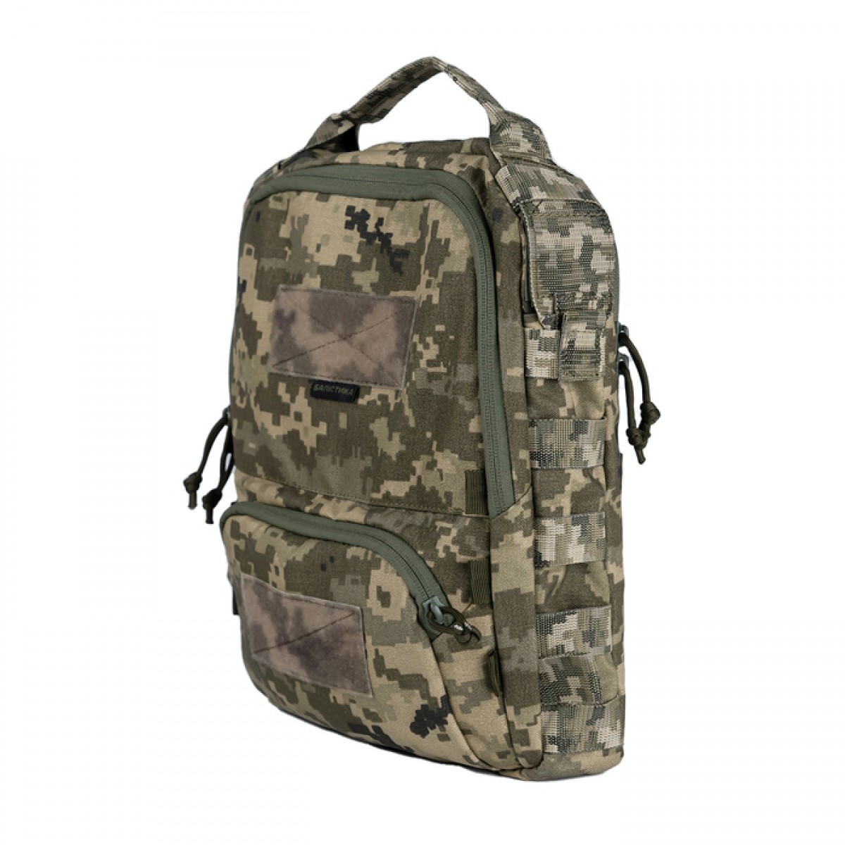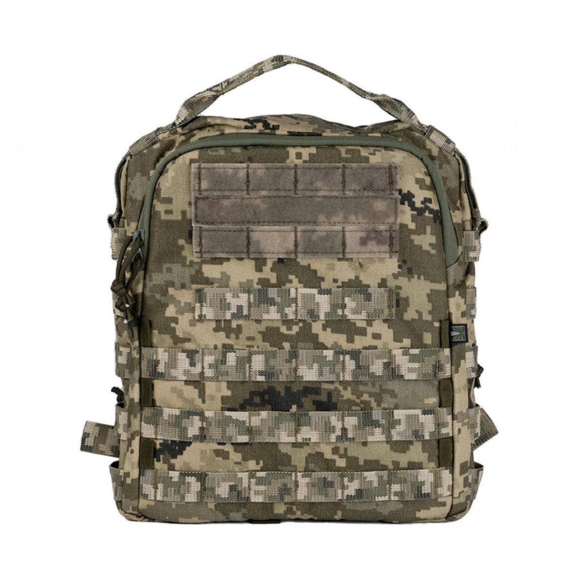 Удобный эргономичный рюкзак дает возможность перекидывать его со спины наперед для быстрого доступа к содержимому. Подходит для выполнения задач во время коротких рейдов и обеспечивает переноску всего необходимого. Несмотря на небольшой объем, предоставляет значительный функционал для размещения различного снаряжения – от гидратора до запасов БК. Особенности товара Рюкзак имеет плоскую форму, что делает его удобным при ношении как спереди, так и сзади. Он оснащен одним основным отделением, доступ к которому можно одновременно получить с передней и задней панелей. Изделие имеет четыре ремешка с фастексами для крепления к плитоноске или бронежилету. Два верхних шнуруются к стропам на плечевых лямках «Сармата» или М3 Pro/Lite. Нижние крепятся к ячейкам на камербандах, для этого на фастексах есть специальные отверстия. Длину ремешков можно отрегулировать, чтобы рюкзак не болтался во время движения. Если есть необходимость носить рюкзак на плечах, для лямок предусмотрены два косых крепления на задней стороне и стропы на ручке. Лямки в комплекте не идут. На задней стороне, а также на боковинах и дне рюкзака помещена система MOLLE, на которую можно подвесить дополнительное снаряжение. В два верхних ряда ячеек на задней панели интегрирована липучка велкро, на которую можно цеплять патчи. На передней стороне помещен один наружный карман (25×14 см), внутри которого нашита эластичная лента-органайзер. На самом кармане и сверху над ним помещены велкро-панели (12×5 см). Рюкзак имеет три внутренних кармана: Изнутри на передней панели – сетчатый с нижним доступом (16×12 см) и обычный непрозрачный (24×12 см), оба на молнии. На задней панели – карман под гидратор до 2 л (24×31 см). В нем есть два велкро-хлястика для крепления гидратора, а также отделение для демпфера из пенки, которое закрывается клапаном с велкро. Молния на кармане оснащена двумя бегунками, которые для закрытия расходятся в стороны. Ручка рюкзака с обоих краев оснащена клапанами с велкро, которые прикрывают отверстия для вывода шланга гидратора. По периметру рюкзака с обеих сторон и на дне вшиты петли, через которые можно продеть веревку или резинку для фиксации дополнительного инвентаря. На дне есть два люверса, которые способствуют вентиляции и предотвращают накопление конденсата. Видеообзор Технические характеристики Основной материал: Cordura 1000D. Фурнитура: WJ, YKK. Стропа: полиамид, 2,5; 3,5; 5 см. Вес: 620 г. Размер: 34×29×9 см. Объем: 9 л.Отзывы о Рюкзак штурмовой-перекидной (ММ-14)