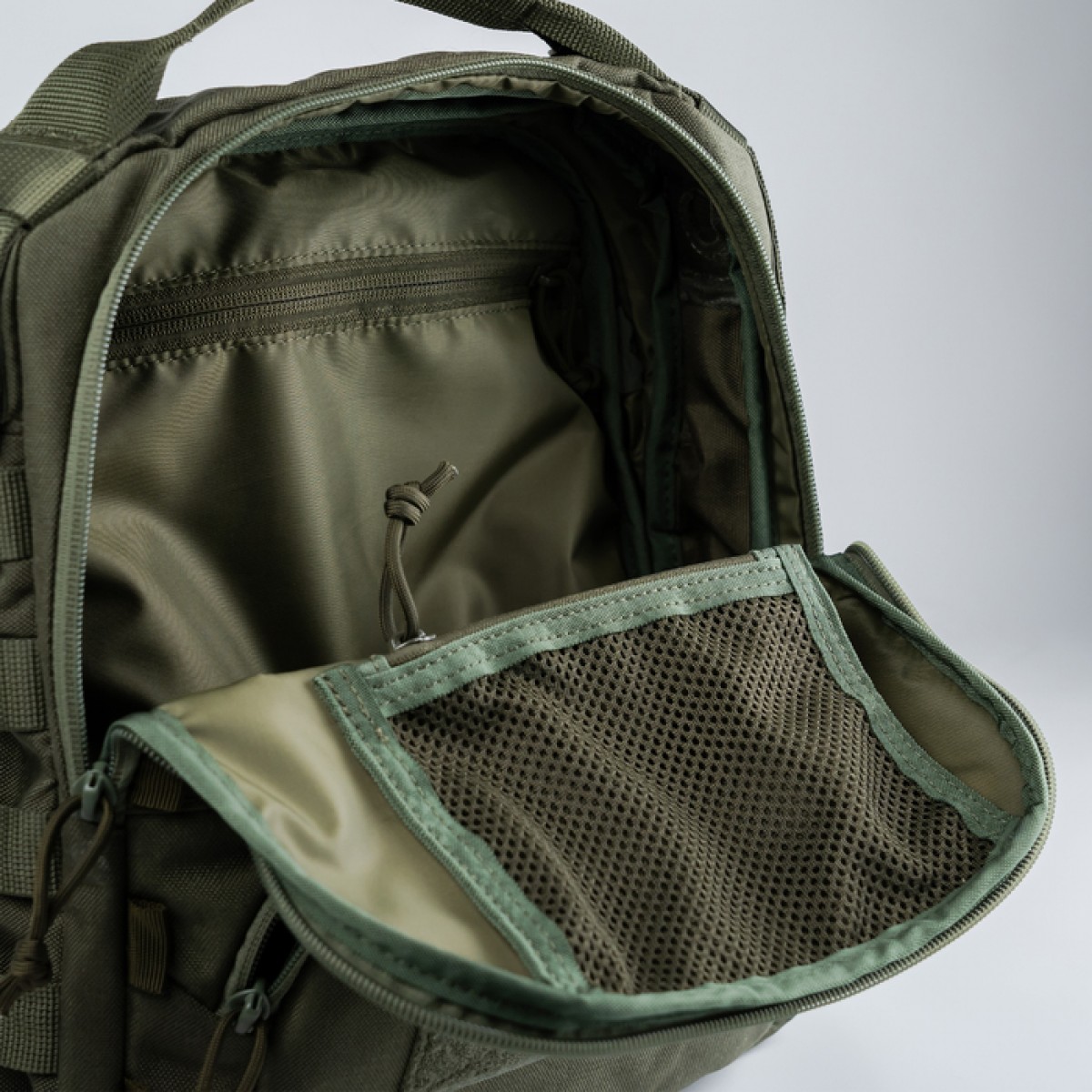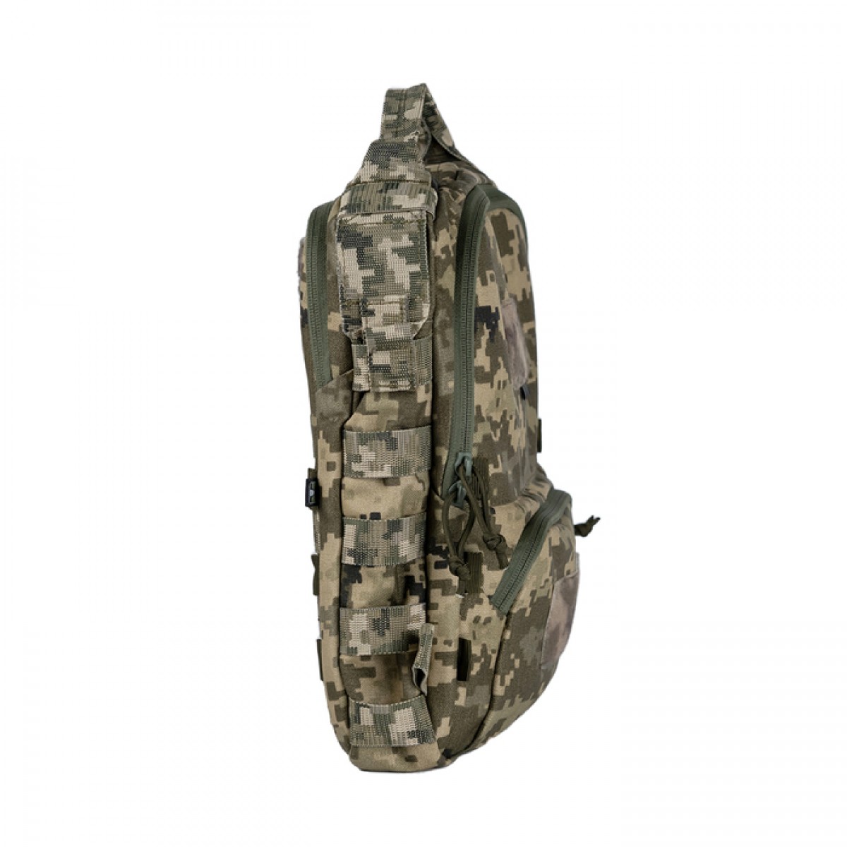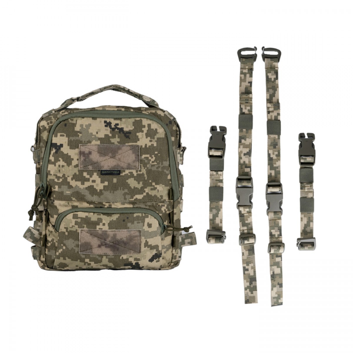 Удобный эргономичный рюкзак дает возможность перекидывать его со спины наперед для быстрого доступа к содержимому. Подходит для выполнения задач во время коротких рейдов и обеспечивает переноску всего необходимого. Несмотря на небольшой объем, предоставляет значительный функционал для размещения различного снаряжения – от гидратора до запасов БК. Особенности товара Рюкзак имеет плоскую форму, что делает его удобным при ношении как спереди, так и сзади. Он оснащен одним основным отделением, доступ к которому можно одновременно получить с передней и задней панелей. Изделие имеет четыре ремешка с фастексами для крепления к плитоноске или бронежилету. Два верхних шнуруются к стропам на плечевых лямках «Сармата» или М3 Pro/Lite. Нижние крепятся к ячейкам на камербандах, для этого на фастексах есть специальные отверстия. Длину ремешков можно отрегулировать, чтобы рюкзак не болтался во время движения. Если есть необходимость носить рюкзак на плечах, для лямок предусмотрены два косых крепления на задней стороне и стропы на ручке. Лямки в комплекте не идут. На задней стороне, а также на боковинах и дне рюкзака помещена система MOLLE, на которую можно подвесить дополнительное снаряжение. В два верхних ряда ячеек на задней панели интегрирована липучка велкро, на которую можно цеплять патчи. На передней стороне помещен один наружный карман (25×14 см), внутри которого нашита эластичная лента-органайзер. На самом кармане и сверху над ним помещены велкро-панели (12×5 см). Рюкзак имеет три внутренних кармана: Изнутри на передней панели – сетчатый с нижним доступом (16×12 см) и обычный непрозрачный (24×12 см), оба на молнии. На задней панели – карман под гидратор до 2 л (24×31 см). В нем есть два велкро-хлястика для крепления гидратора, а также отделение для демпфера из пенки, которое закрывается клапаном с велкро. Молния на кармане оснащена двумя бегунками, которые для закрытия расходятся в стороны. Ручка рюкзака с обоих краев оснащена клапанами с велкро, которые прикрывают отверстия для вывода шланга гидратора. По периметру рюкзака с обеих сторон и на дне вшиты петли, через которые можно продеть веревку или резинку для фиксации дополнительного инвентаря. На дне есть два люверса, которые способствуют вентиляции и предотвращают накопление конденсата. Видеообзор Технические характеристики Основной материал: Cordura 1000D. Фурнитура: WJ, YKK. Стропа: полиамид, 2,5; 3,5; 5 см. Вес: 620 г. Размер: 34×29×9 см. Объем: 9 л.Отзывы о Рюкзак штурмовой-перекидной (ММ-14)