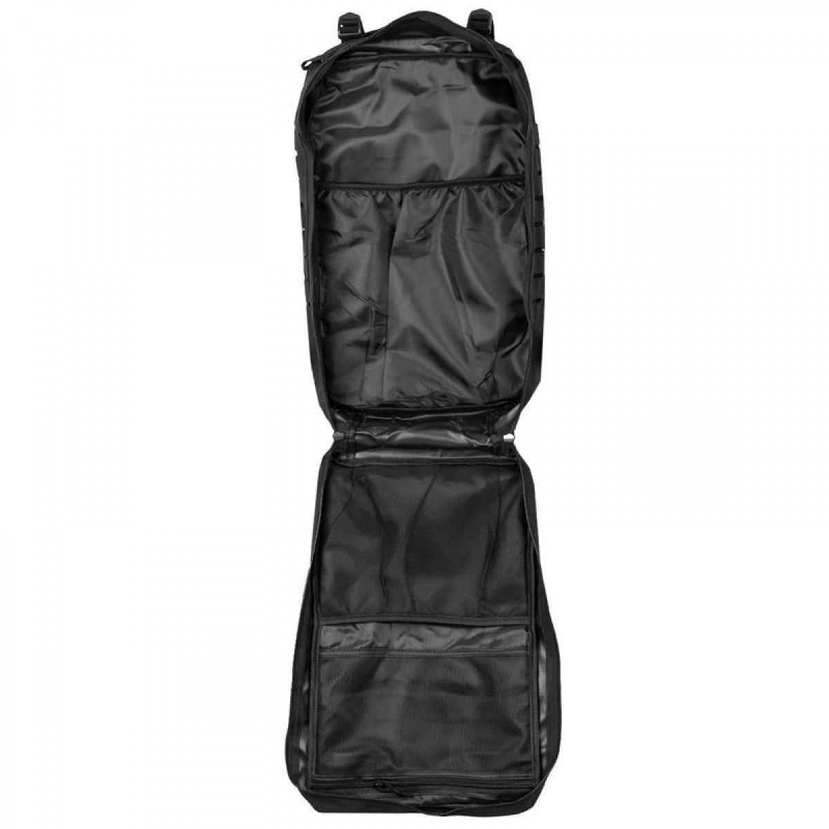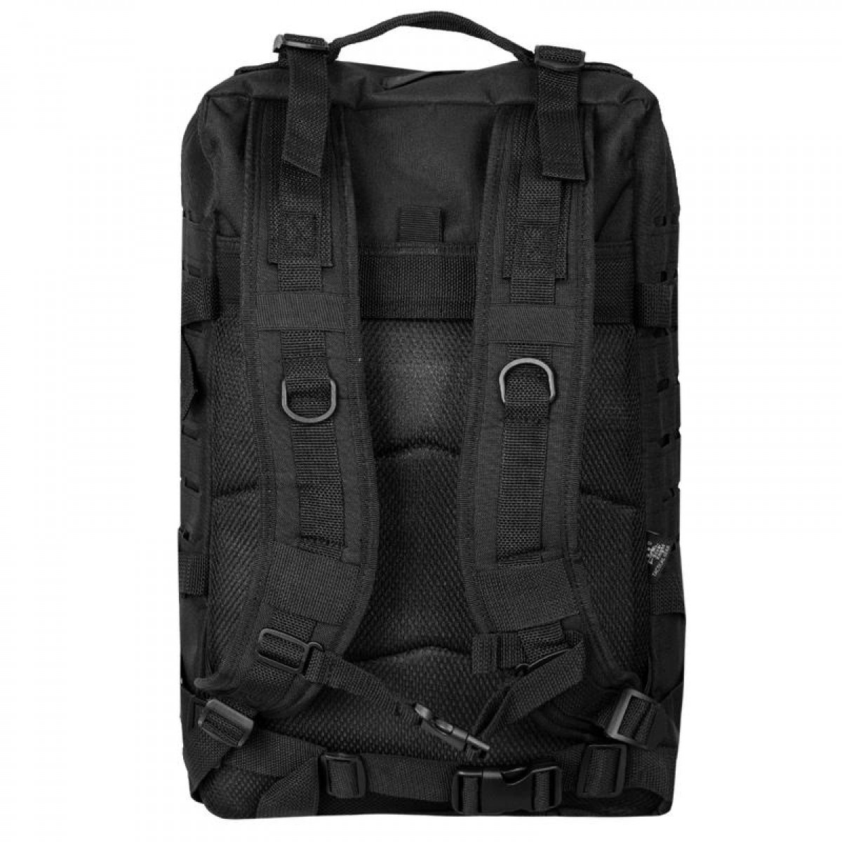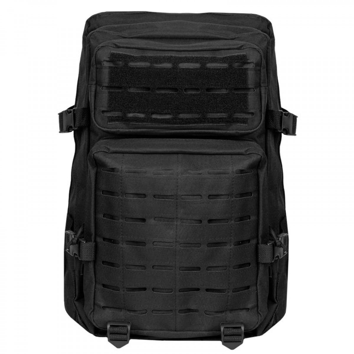 Изготовлен из качественного полиэстера 600D с ПВХ покрытием, что обеспечит защиту от механических повреждений. Спереди рюкзак снабжен системой MOLLE, что позволит при необходимости увеличить его объем дополнительными подсумками.