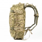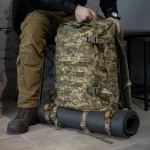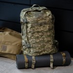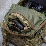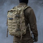 Боевой рюкзак от «Баллистика» отлично приспособлен для удобной переноски грузов во время длительных миссий. Он является частью боевого комплекта военнослужащих ВСУ и разработан для использования в сложных полевых условиях. Рюкзак можно носить отдельно или в сочетании с другими элементами снаряжения. Также его можно использовать в повседневной жизни, в туристических походах и просто дальних поездках. Особенности товара РБИ имеет одно основное отделение и три внутренних кармана. Он оснащен ручкой сверху, двумя косыми плечевыми лямками, стабилизационными и разгрузочными ремнями, а также дополнительными элементами для навесного закрепления предметов экипировки. Внешняя конструкция Широкий функционал рюкзака охватывает следующие аспекты: Основное отделение закрывается с помощью молнии с двумя бегунками, которые сходятся вместе и которые можно открывать на одну или вторую сторону. Молния прячется под планкой, что защищает ее от неблагоприятных погодных условий. К верхней части рюкзака пришита прочная ручка из сдвоенной стропы. На левом крае этой ручки помещен клапан на велкро, который закрывает отверстие для вывода наружу приспособлений по типу антенны, шланга к гидратору, проводов для наушников и т. д. На передней панели снаружи расположены ячейки MOLLE в семь рядов. На один из верхних рядов нашита липучка, также есть отдельная велкро-панель для идентификаторов (9×5 см). Боковые панели также оснащены ячейками, на которые удобно навесить несколько подсумков. На заднюю панель настрочены три смягчающие подушки, которые уменьшают давление на спину. В специальное отделение внутри рюкзака вставлен дополнительный слой пены и лист жесткого пластика, который помогает спинке держать форму. Плечевые лямки оснащены встроенными демпферами, которые равномерно распределяют вес на большей площади плечевой зоны. К каждой лямке пришита разгрузочная стропа. Ее свободный конец прикреплен к верхней панели рюкзака с помощью трехщелевой рамки. Это позволяет регулировать высоту лямки и положение рюкзака относительно туловища, а значит, также снижает нагрузку на плечи и спину. Лямки можно зафиксировать с помощью грудного ремешка с фастексом, который предотвращает их сползание во время движения. Длина ремешка также регулируется, к тому же его можно снять и переместить на удобный для пользователя уровень. В четырех местах к фронтальным ячейкам крепятся боковые стяжки с фастексами, с помощью которых регулируется объем рюкзака. Ко дну пришиты два ремешка, которые помогут зафиксировать спальник или коврик. Трехщелевые рамки на них позволяют затянуть стропы и отрегулировать их объем. Внутреннее наполнение Отдельно следует рассмотреть возможности для организации внутреннего пространства РБИ. Они предусматривают следующее: Изнутри передней панели помещены два кармана на молниях. Верхний имеет размер 17×26 см, нижний – 24×26 см. Оба оснащены металлическими люверсами для вентиляции и выхода мелкого мусора. На дне основного отделения есть еще один люверс. Складки на карманах обеспечивают дополнительный объем, что позволяет хранить в них больше вещей без лишнего давления на содержимое. В самом верху передней панели помещена петля из стропы, которая выполняет роль пулера для быстрого раскрытия основного отделения. Для этого во время закрыван