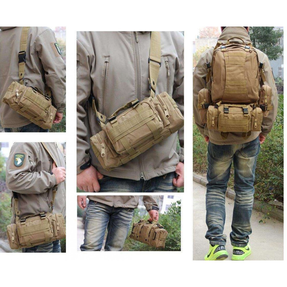 Съемные боковые сумки и сумка на поясе могут использоваться отдельно. Сумка в отдельном виде имеет свой собственный ремень через плечо или на пояс.