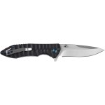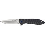 Клинок формы Drop-Point выполнен из нержавеющей стали 3Cr13MoV, которая отличается хорошими показателями коррозионной устойчивости, а также простотой правки режущей кромки. Фиксация клинка осуществляется замком Liner-Lock, пластина которого имеет насечку для более удобного оперирования одной рукой.