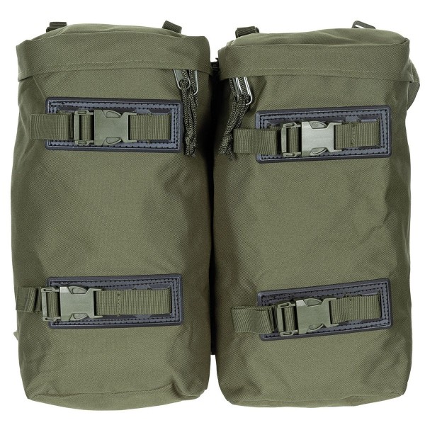 - 2 съемных боковых кармана с двусторонними молниями и 2 регулируемыми лямками с застежками-молниями, можно соединять друг с другом, можно использовать как рюкзак, различные петли и варианты застежек,