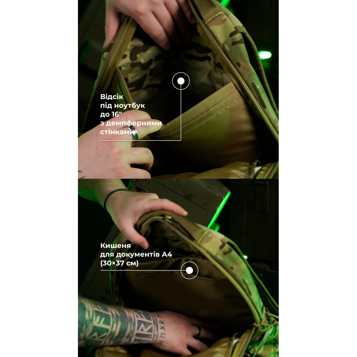 Прочный, функциональный и компактный рюкзак для города, путешествий и боевых выездов ✅ Ключевые преимущества Объем 26 л – подходит как для города, так и для длительных поездок Вмещает ноутбук до 16" + документы формата A4 Организованное пространство: 2 основных отделения, 4 внешних кармана, органайзеры Демпферная спинка и мягкие лямки Интерфейс системы MOLLE, боковые стяжки, грудная фиксация, D-кольца Описание товара Р1М1 – это компактный, функциональный и выносливый рюкзак, который подходит для тактических задач, повседневного использования, путешествий и соответствует требованиям к ручной клади в самолете (размер 30×45 см). Основные отделения: Переднее – имеет широкое раскрытие, один большой открытый карман (30×26 см) и 3 сетчатых поменьше (два по 15×14 см и один 30×19 см), а также эластичные органайзеры Заднее – вмещает ноутбук до 16" и документы формата A4. Два отсека разделены мягкой вставкой: бумаги не мнутся, техника – защищена от ударов Внешние карманы: 2 фронтальных: 27×11 см (верхний с велкро-панелью на фасаде и фиксаторами внутри) и 20×26 см (нижний с молли-ячейками) 2 боковых: 12×25 см – идеальны под бутылку 1 л, термос, термокружку, зонт или другие продолговатые вещи Удобство и настройка: Демпферная анатомическая спинка с 3D-сеткой обеспечивает вентиляцию и комфорт Мягкие лямки с демпфером 10 мм смягчают давление на плечи даже при полной нагрузке Регулируемая грудная стяжка на кедере со съемной клипсой, которая ездит по нему вверх и вниз, легко настраивается под любое телосложение Фиксирующая стропа (стяжка с фастексом) позволяет регулировать объем рюкзака или закрепить снаружи снаряжение – коврик, спальник и т. д. ✔️ Две ручки: сверху и спереди снизу – удобно переносить или доставать рюкзак из авто, с полки или из багажника ✔️ Мягкое дно держит форму и защищает технику от повреждений ❓ Часто задаваемые вопросы Подходит ли рюкзак для ежедневного использования в городе? Да. Объем 26 л оптимален для городских нужд, а продуманное внутреннее пространство позволяет упорядоченно хранить вещи – от ноутбука до личных вещей. Не будет ли он слишком громоздким для ручной клади в самолете? Нет. Размеры рюкзака (30×45 см) соответствуют большинству стандартов авиакомпаний в отношении ручной клади. Выдерживает ли он тяжелое снаряжение? Да. Благодаря Cordura 1000D, полиамидным стропам и фурнитуре YKK / Woojin рюкзак выдерживает длительную нагрузку в полевых условиях. Можно ли навешивать дополнительное снаряжение? Да. Рюкзак оснащен ячейками молли на фронтальном кармане, к которым можно прикрепить подсумки, чтобы увеличить его объем (например, утилитарный или подсумок под документы, а рядом – турникетный). На D-кольца на лямках можно зафиксировать карабины с мотком веревки, перчатками и т. д. Удобно ли его носить на длинные дистанции? Да. Мягкие демпферные лямки с грудной стяжкой, анатомическая спинка с вентиляцией, а также регулируемая посадка делают рюкзак удобным даже в длительных переходах. Влезет ли ноутбук и будет ли он защищен? Да. В рюкзаке предусмотрен отсек для ноутбука до 16". Отсек имеет мягкую перегородку, а спинка и дно рюкзака, оснащенные демпферами, обеспечивают дополнительную защиту техники от ударов и давления.Основные характеристики Тактический рюкзак “Р1М1” (26 л | Неоригинальный мультикам) ТМ Баллистика