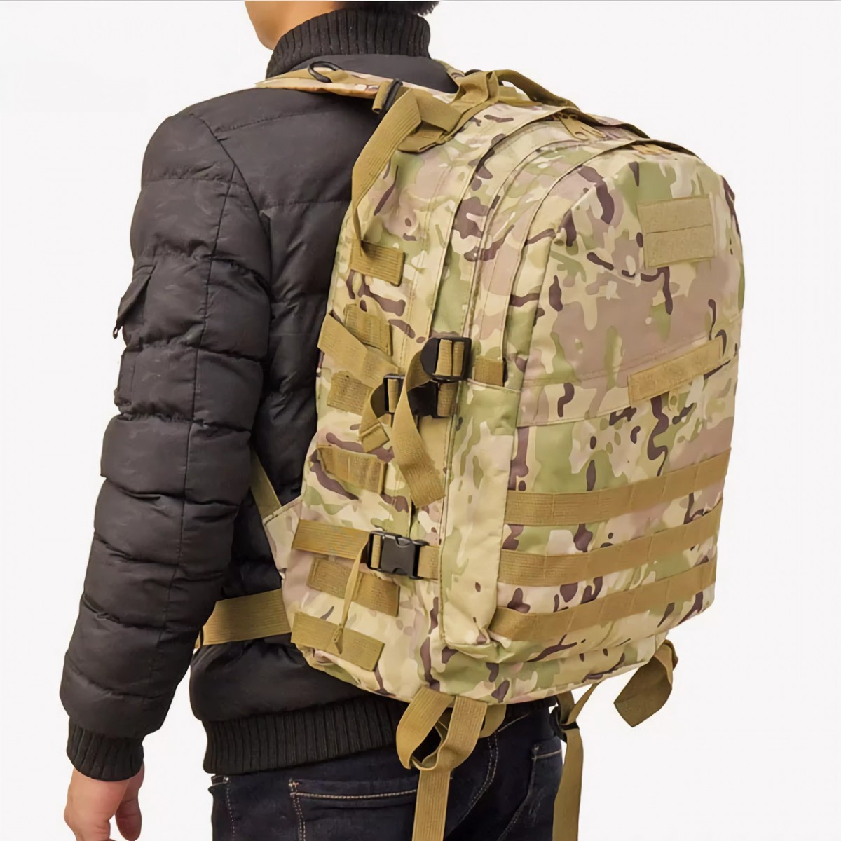 Рюкзак выполнен из прочных влагозащитных синтетических тканей Oxford плотностью 600D и 800D. Эргономика рюкзака и применяемые материалы позволяют сохранять его форму вне зависимости от загрузки. Удобное и надежное крепление ремней и лямок способствует надежной фиксации рюкзака на спине и комфортному его использованию даже при необходимости быстро передвигаться.