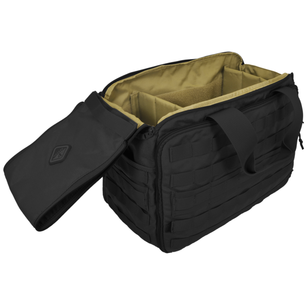 • Крепежная система MOLLE нашитая на лицевой и боковой части сумки, позволяет увеличить объём сумки в два раза