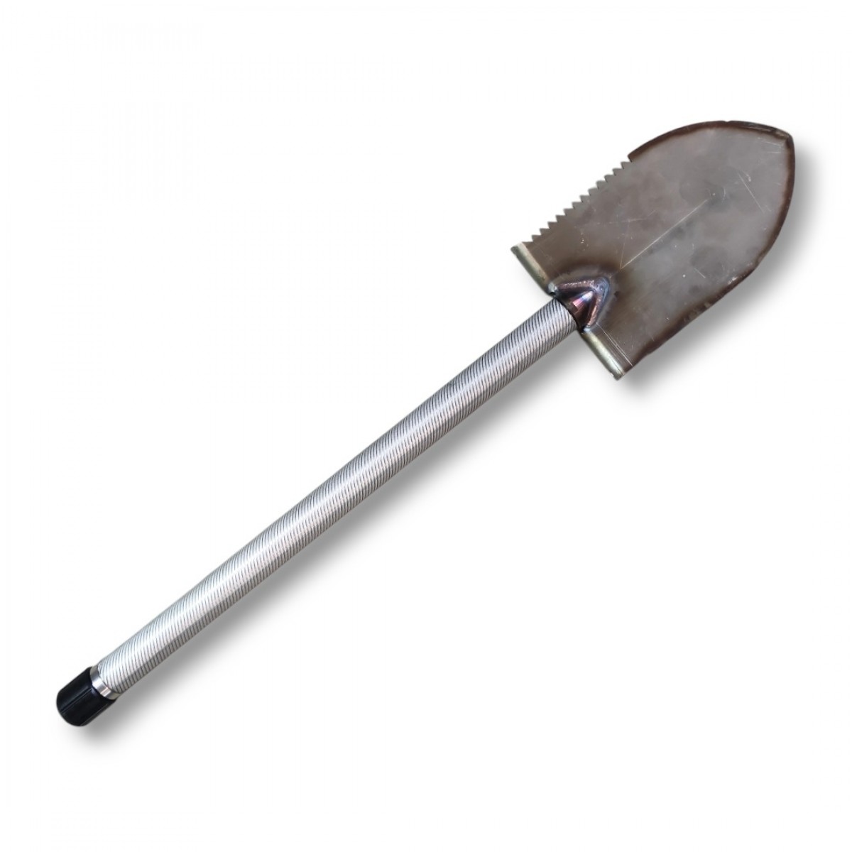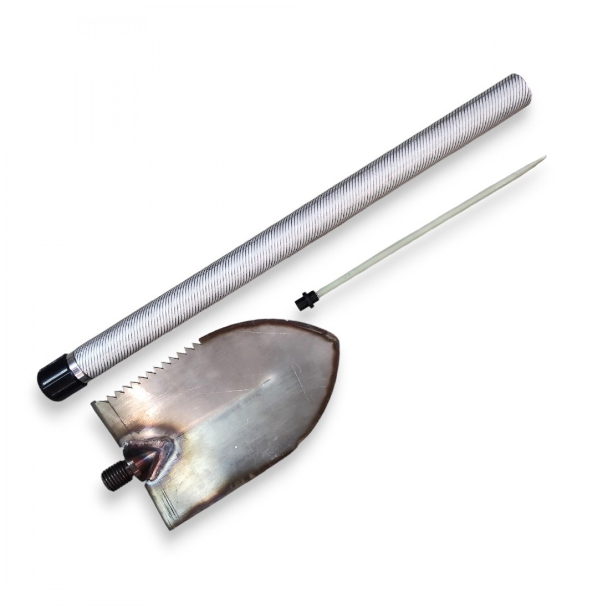 Конструкция лопатки имеет острую пилу 120мм и полную зоточку передней кромки, также возможно заострение боковой кромки (использование для срубания твердых материалов и древесины). Жесткая конструкция щупа и лопатки позволяет его использовать для самозащиты Габариты в сложенном состоянии позволяют его располагать компактно сбоку корпуса над бронезащитой и в рюкзаке.