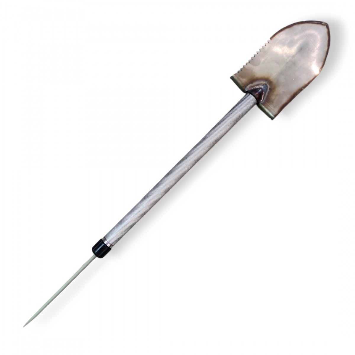 Жало щупа прячется внутрь. Лопатка присоединяется к ручке с помощью резьбового соединения.