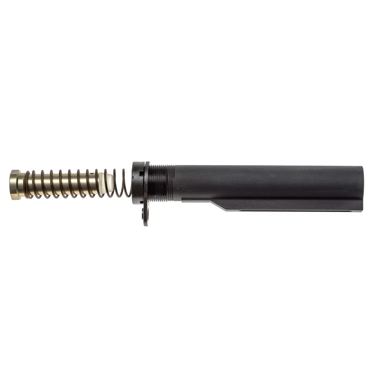 Этот набор содержит все необходимые компоненты для установки приклада стандарта Mil-Spec. В комплект входит шестипозиционная труба приклада Mil-Spec, изготовленная из прочного авиационного алюминия 7075-T6, торцевая пластина, фиксирующая гайка M4, буфер и пружина буфера.