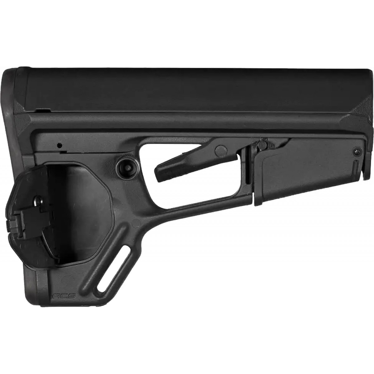 Приклад Magpul ACS-L (Adaptable Carbine Stock - Light) позволяет заменить штатный приклад карабинов AR-15 на более современнный и практичный. Приклад изготовлен из прочного полимера, имеет обтекаемую форму, препятствующую зацепам оружия за одежду или снаряжение. В корпусе предусмотрены отсеки для хранения различных мелочей, которые будут полезны в полевых условиях. Фиксатор приклада расположен в середине рамки самого приклада, что предотвращает случайное нажатие. Отличие от базовой модели ACS заключается в отсутствии батарейного отсека.