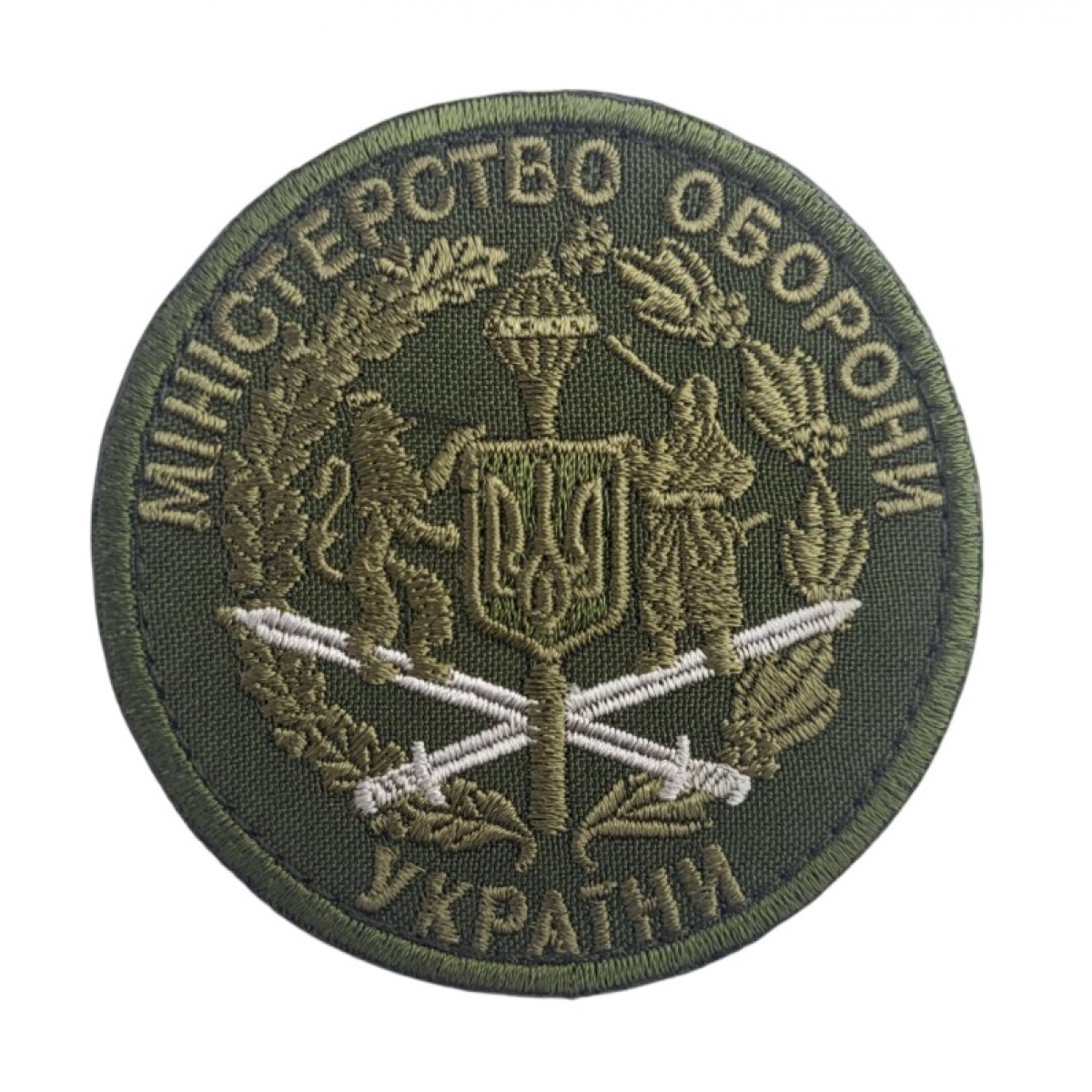 Описание Шеврон Министерство обороны МО Украины Олива (размер 8×8 см)