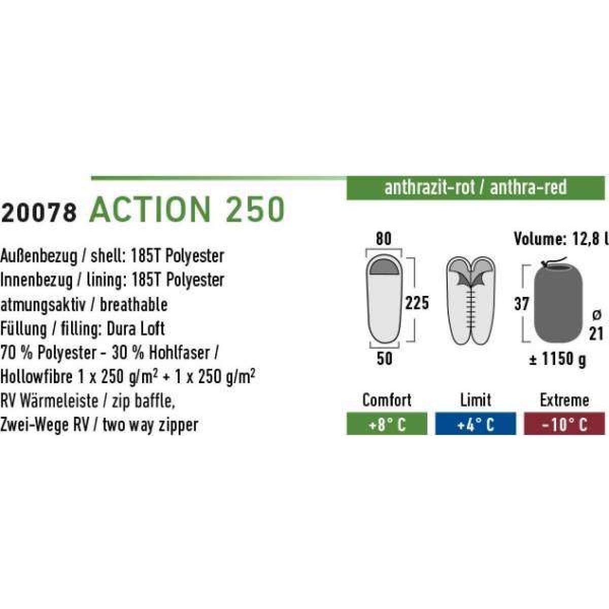 Описание Спальный мешок High Peak Action 250 / +4°C (Right) Black/red