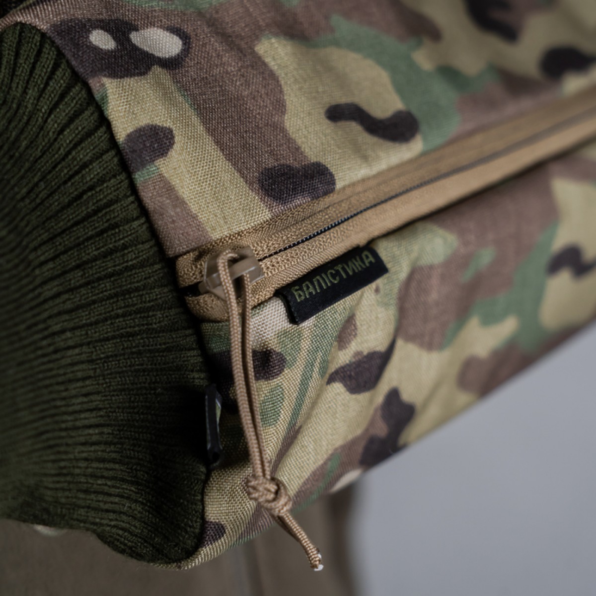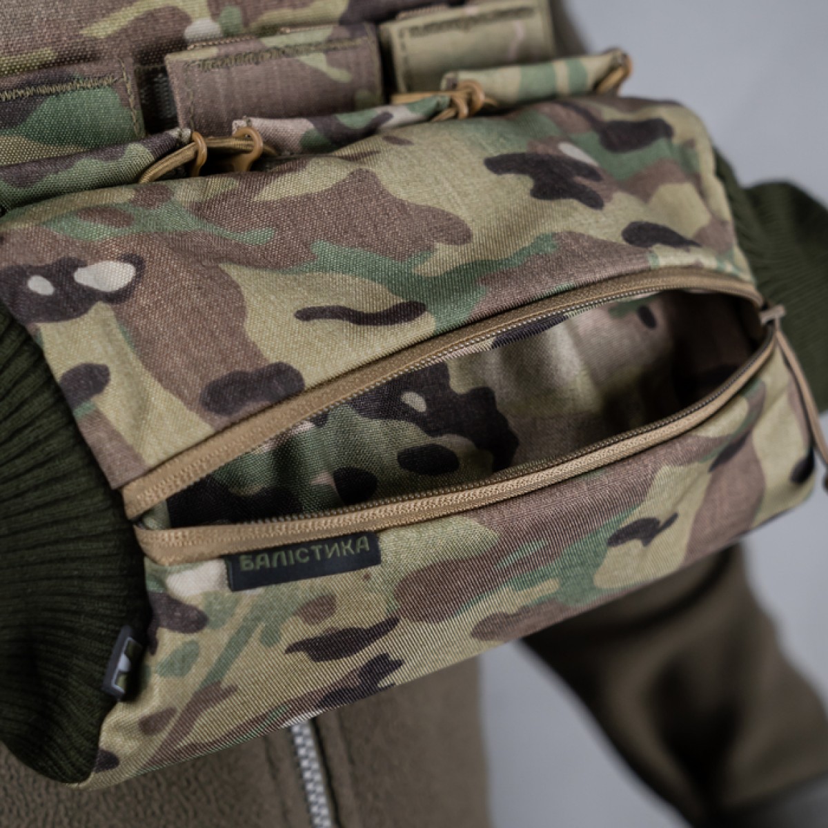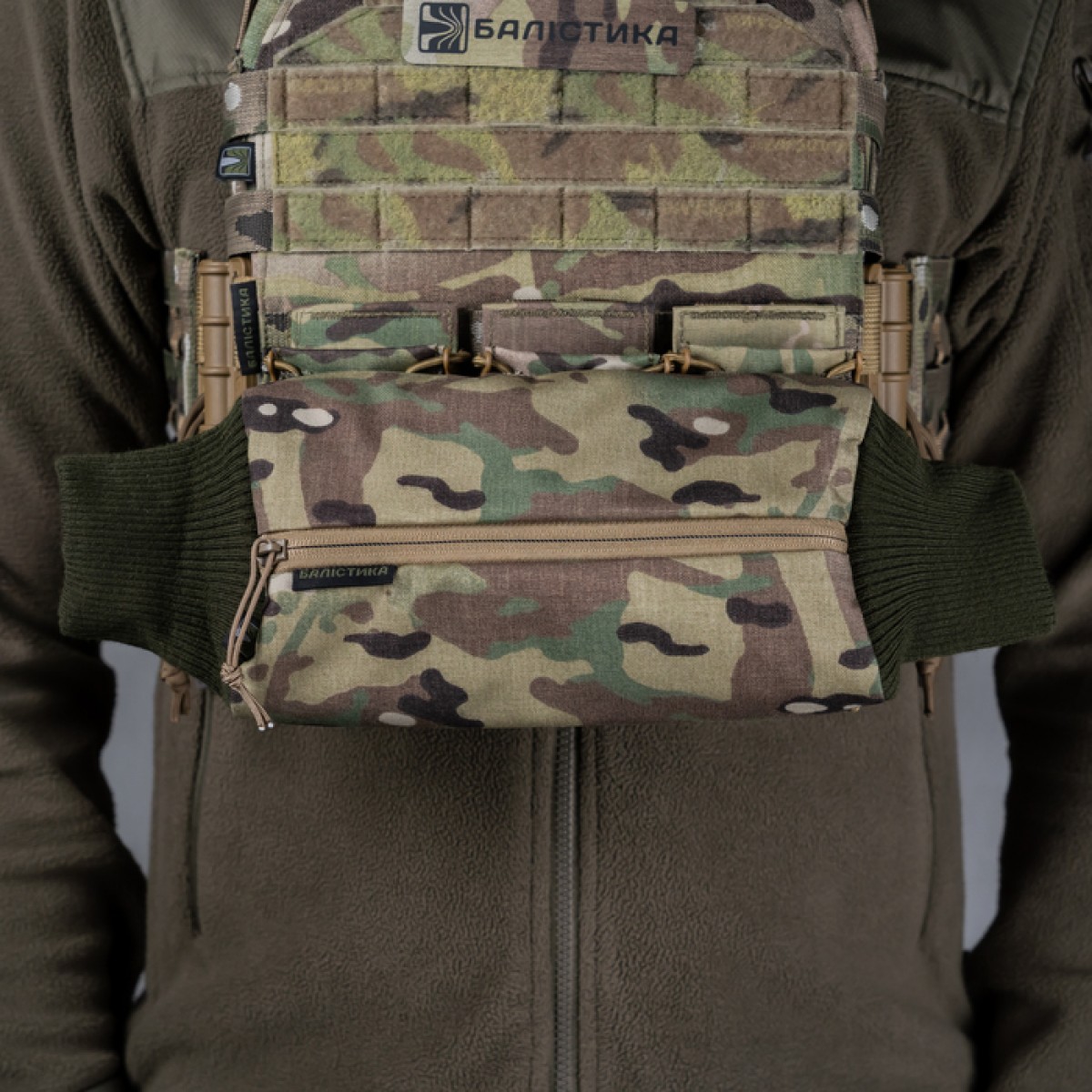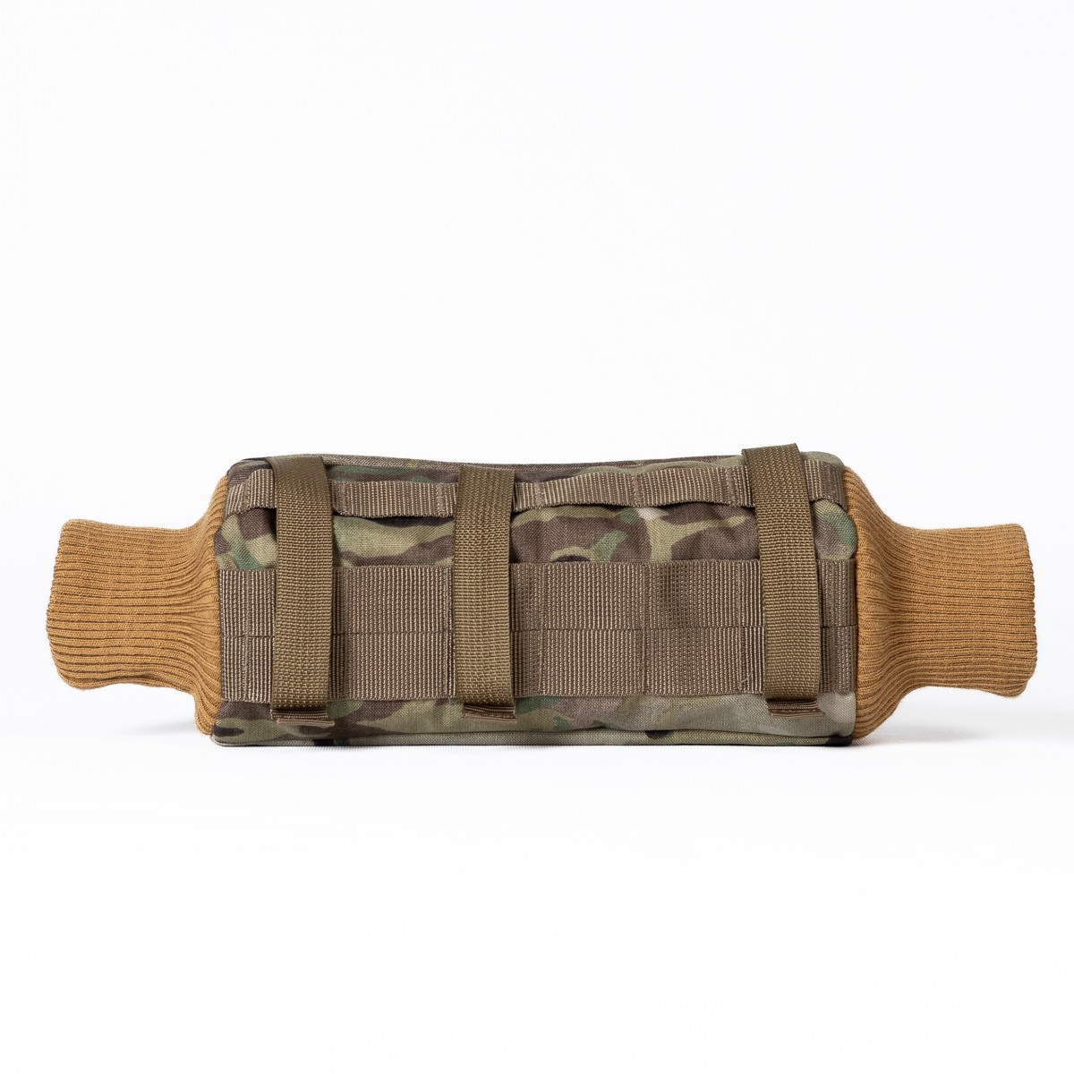 Холод не должен быть препятствием для выполнения задач. Сохранение мелкой моторики крайне важно для точности движений при работе с электронными устройствами и тактическими инструментами. Тактическая муфта от «Баллистика» согреет ваши руки, когда вы неактивны, и не станет помехой, когда вы будете двигаться. Особенности товара Благодаря продуманной конструкции муфта защитит руки от холода и сохранит их подвижность: Внешний слой изготовлен из ветро- и водонепроницаемой кордуры, внутренний – из плотного флиса, благодаря чему изделие способно хорошо сохранять тепло в мороз до -10-15 °C. Эффективность муфты увеличивается при использовании с термохимической грелкой. Крепится на плитоноску непосредственно или поверх подсумков для магазинов с помощью системы MOLLE. Другой вариант – носить с ремешком на плече или шее. При необходимости внутреннее пространство можно увеличить, для этого нужно расстегнуть кармашек на передней части. Если объема муфты достаточно, в кармане можно хранить телефон или другие небольшие вещи. Идеально подходит для службы на блокпосту, опорном и наблюдательном пункте, где важно быстро освобождать руки для ведения записей, работы с сенсорными экранами или во время стрельбы из штатного оружия. Также пригодится пилотам дронов. Технические характеристики Внешний материал: Cordura 500D или 1000D. Внутренний материал: флис плотностью 250-270 г/м2. Манжеты: трикотажное полотно. Вес: 150 г. Размеры: Ширина без манжет: 24 см. Ширина с манжетами: 38 см. Высота: 16 см. Диаметр в закрытом состоянии: 10 см. Диаметр в раскрытом состоянии: 15 см.Основные характеристики Тактическая муфта для рук (Мультикам)