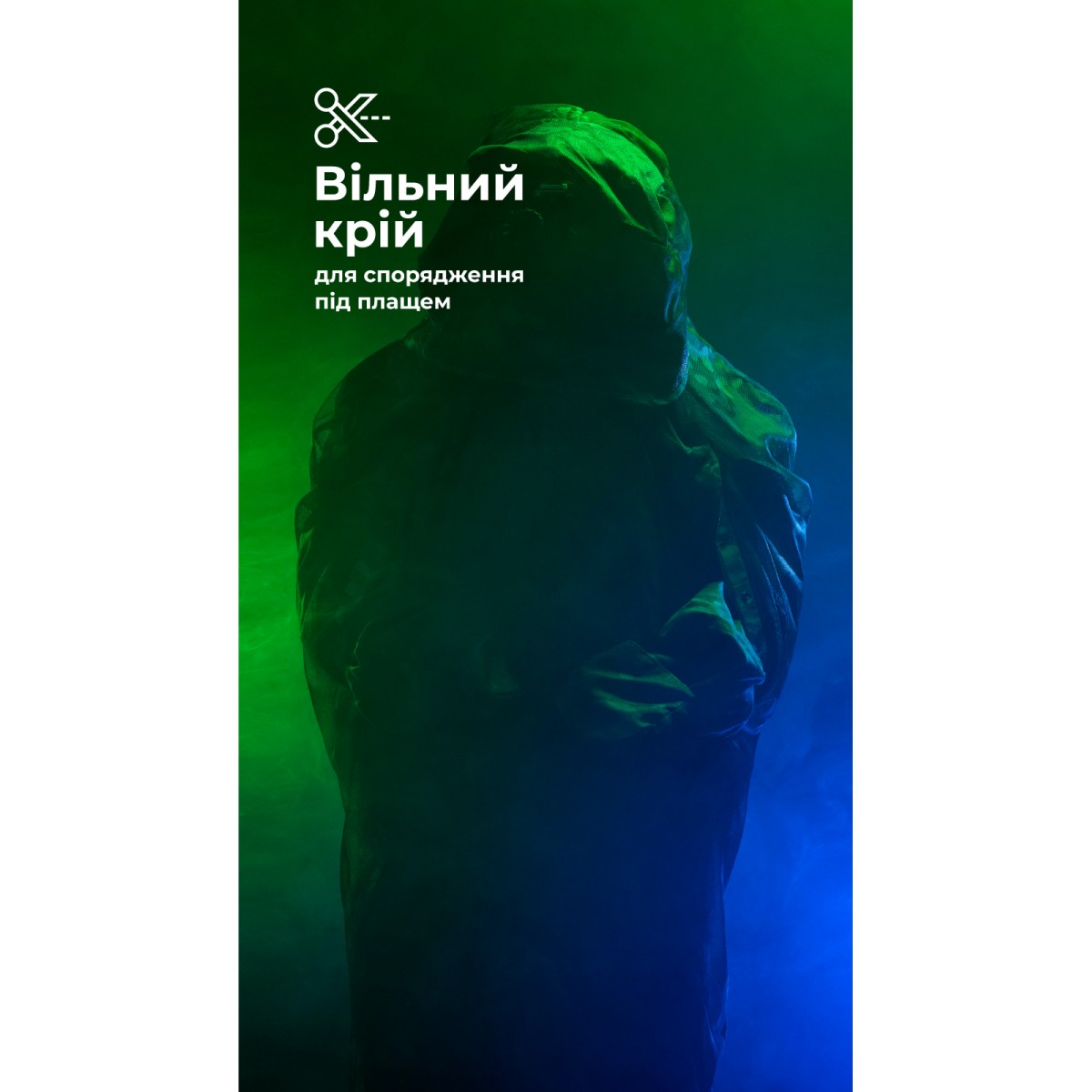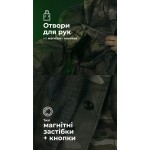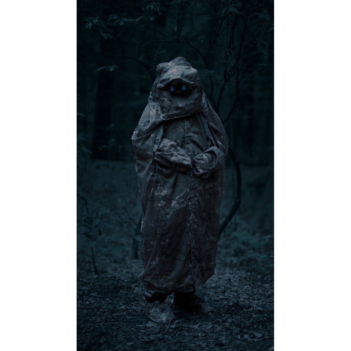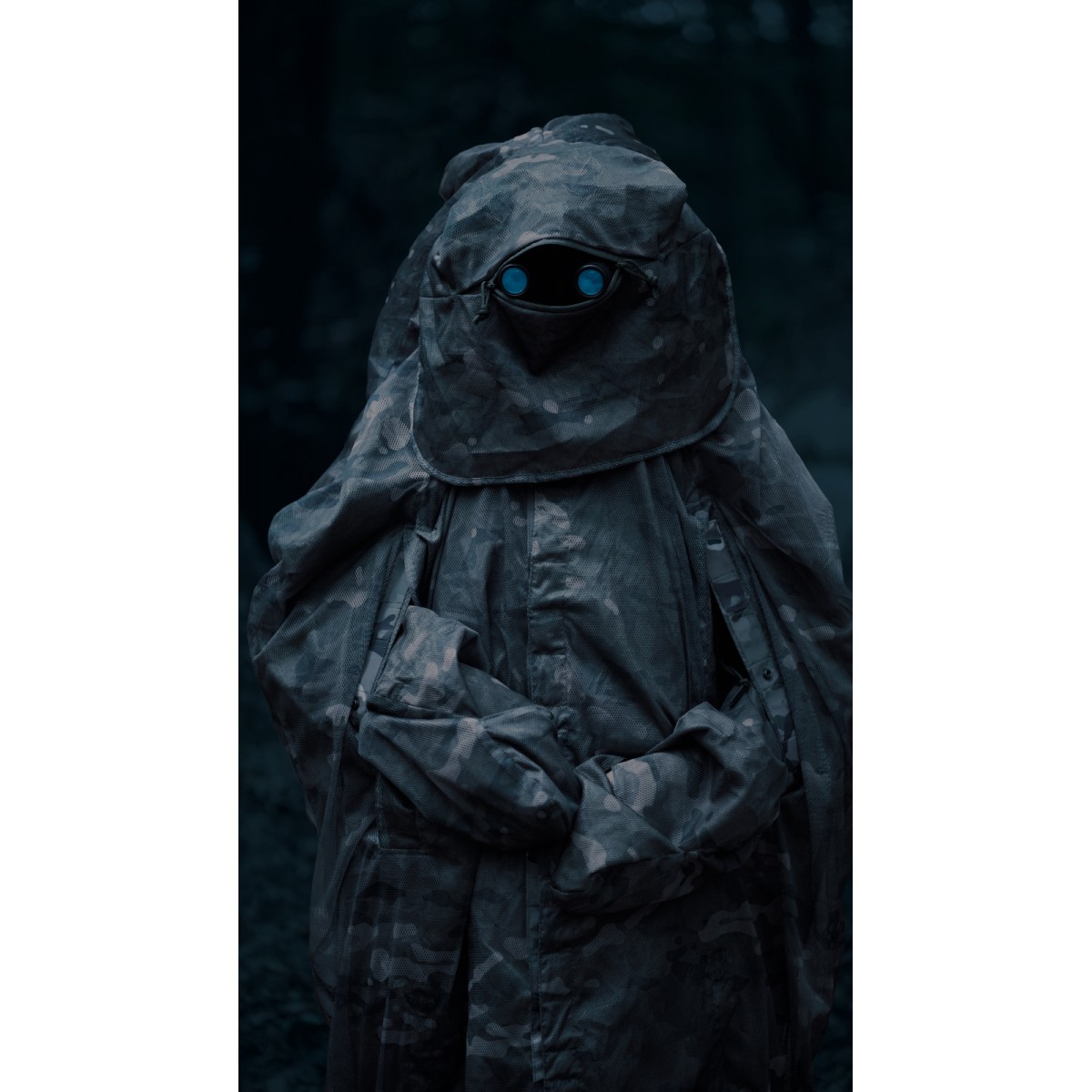 Пончо «Чугайстер» создано для маскировки военнослужащего от тепловизионных приборов, прицелов и дронов с тепловизионными камерами. Благодаря инновационной двусторонней ткани снижает заметность тепловой сигнатуры человека и адаптирует ее к температурному фону окружающей среды. ✅ Ключевые преимущества Маскирует от тепловизора и помогает бойцу дойти до позиций Уменьшает риск обнаружения, но не делает вас невидимым Отражает тепло окружающей среды Сетчатая сторона обеспечивает визуальную маскировку Перекидное забрало с прорезью для глаз на молнии Окошко для глаз совместимо с моно- и бинокуляром Регулируемый в двух проекциях капюшон В комплекте съемные нарукавники и бахилы Имеет свободный крой, небольшой вес, не сковывает движений Можно регулировать длину Тихие застежки на магнитах и кнопках Двусторонний чехол: камуфляж + сигнальный неоновый зеленый Описание товара «Чугайстер» не просто блокирует тепловое излучение, а отражает тепловую энергию окружающих объектов. Таким образом, тело военного теряет тепловой контраст с фоном, становится менее видимым для тепловизора. Благодаря этому эффект маскировки сохраняется даже при длительном ношении – в отличие от обычных средств (например, со слоем паробарьера), которые постепенно прогреваются и теряют эффективность. При этом «Чугайстер» лучше всего работает в пасмурную погоду, в сумерках и ночью. Можно использовать на две стороны: ✔️ 2D-сетка ✔️ Гладкая ткань Обе стороны обеспечивают экранирующие свойства и отражают тепловую сигнатуру от окружающих объектов. Сетчатая сторона дополняет их дополнительным визуальным маскированием для ясной погоды. В пасмурную погоду и ночью принципиальной разницы в выборе стороны пончо нет. Однако тесты показали, что вариант с сеткой наружу более универсален, он не создает аномально холодный контур и не отражает лунный свет. Модульная конструкция: ✔️ В комплекте идут два съемных нарукавника с клапанами, которые скрывают ладони по типу перчаток, и бахилы с клапанами для стоп. ✔️ На верхнем и нижнем краях они стягиваются шоккордом с фиксаторами. ✔️ В клапанах нарукавников есть отверстия, через которые можно быстро вынуть или спрятать ладони. ✔️ На клапане бахил есть дополнительный шоккорд – он нужен для того, чтобы клапан держался на стопе во время движения и не сползал. Функциональный капюшон: ✔️ По краю и на затылке в нем протянуты шоккорды с фиксаторами для регулировки объема. ✔️ Оснащен откидным забралом, которое скрывает лицо от обнаружения. На уровне глаз в него вшита молния (27 см) с двумя бегунками, которые позволяют изменять размер прорези. Это дает возможность адаптировать его под тепловизионные устройства (монокуляр или бинокуляр) без открытия лица. ✔️ В верхней части капюшона и в забрале встроены по два магнита. Поэтому при откидывании забрала назад оно остается на голове и не спадает на лицо. Застежка. Пончо оборудовано магнитными фиксаторами для быстрой и бесшумной застежки и расстежки. Для усиления фиксации также есть кнопки. Отверстия для рук. По бокам расположены отверстия (40 см), в которые можно просунуть руки. Они тоже застегиваются на магниты и кнопки. Поэтому их можно быстро открыть или закрыть без необходимости снимать пончо, чтобы выполнить работу. Свободный крой и легкий вес. Большой объем пончо позволяет