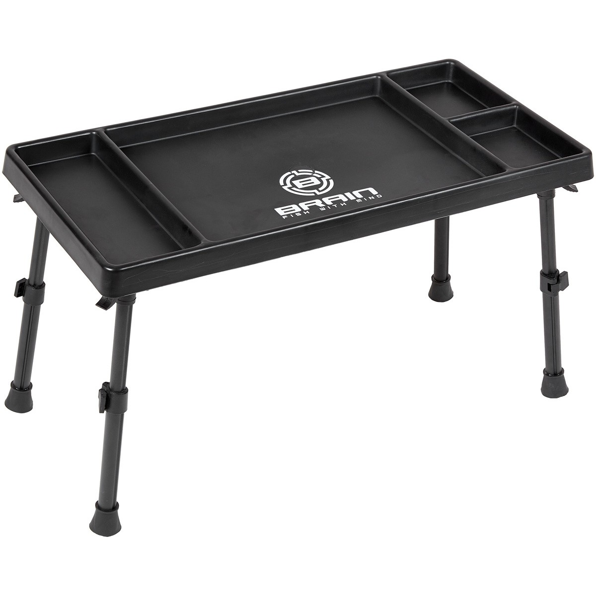 Стол Brain монтажный применяется рыболовами-карпятниками для удобного и компактного размещения инструмента и элементов оснастки, когда есть необходимость производить их монтаж непосредственно у водоёма. Его использование уменьшает вероятность потерять где-нибудь в траве или в палатке вертлюги, стопоры, крючки и другие полезные мелочи, так как они всегда будут находиться в одном месте, а высокие борта не позволят им скатиться на землю. Столешница, выполненная из пластика, разделена на несколько отсеков, в каждом из которых можно уложить свои элементы оснастки. Складные алюминиевые ножки имеют телескопическую конструкцию, чтобы можно было подогнать высоту стола под потребности рыболова. Монтажный стол Brain отличается компактностью и небольшой массой, поэтому его удобно транспортировать к месту рыбалки и он не будет занимать много места.