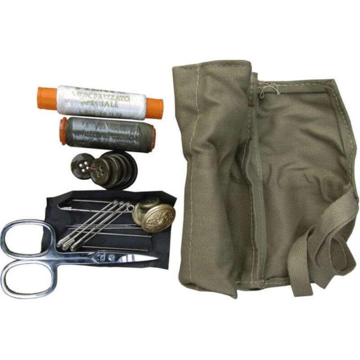 Оригинальный набор военных швейных принадлежностей армии Италии. Все принадлежности упакованы в чехол-подсумок с внутренним карманом на молнии. В набор входят булавки, кнопки, ножницы, швейные иглы, нитевдеватель, нитки. Размеры: 11 х 5 х 5 см.
