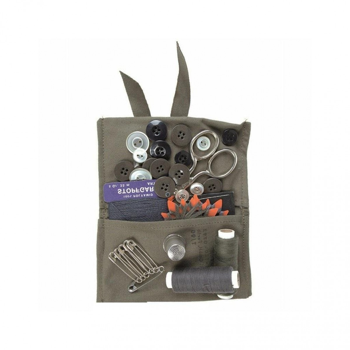 Оригинальный набор военных швейных принадлежностей армии Италии. Все принадлежности упакованы в чехол-подсумок с внутренним карманом на молнии. В набор входят булавки, кнопки, ножницы, швейные иглы, нитевдеватель, нитки. Размеры: 11 х 5 х 5 см.