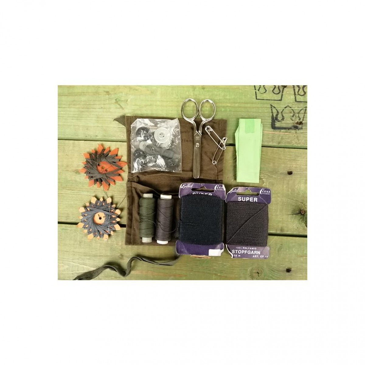 Кому, как не солдатам, знать о тяготах пребывания в полевых условиях. О ветках, рвущих одежду, теряющихся пуговицах и прочих дефектах, возникающих в походе и ведущих к порче армейской формы. Для того, чтобы на месте устранить эти досадные неудобства, достаточно иметь под рукой всего один аксессуар. Маленький, компактный швейный набор, который может поместится в кармане рюкзака или сумки, или же просто в кармане. Немецкая армия заботится о своих солдатах на все 100%.