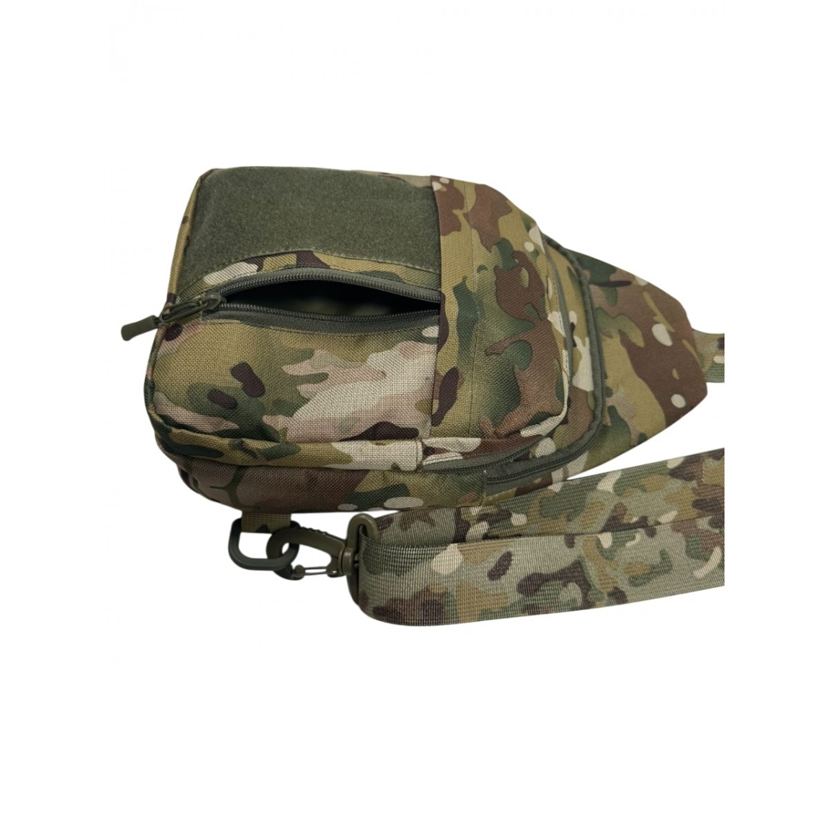 Мужская функциональная сумка с одной шлейкой, с двумя отделениями разных размеров и карманами. Такую сумку можно носить на груди, на одном плече или через плечо на спине. Шлейка регулируется по длине.