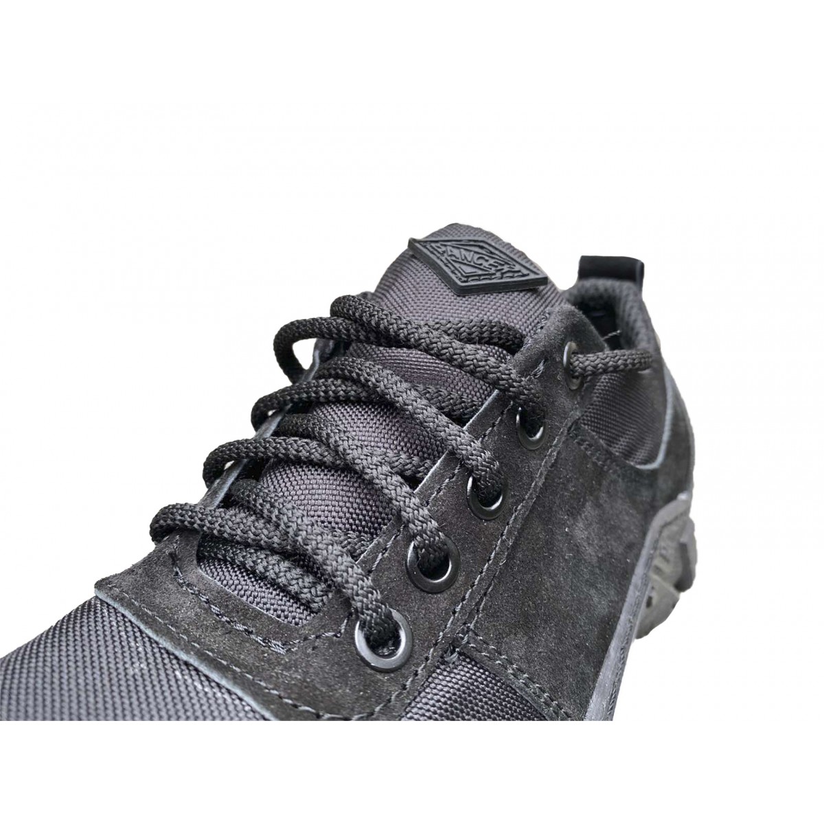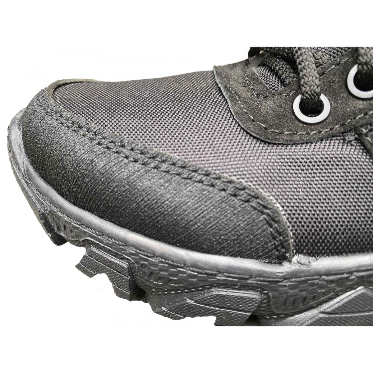 Эти кроссовки разработаны для ежедневной тактической работы, патрулей, тренировок и перемещений по различным типам покрытия. Комбинация нубука и плотной сетки обеспечивает баланс износостойкости и вентиляции, а усиленные накладки в области носка и пятки предотвращают истирание и защищают обувь при контакте с твердыми поверхностями. Шнуровка выполнена на металлических люверсах, рассчитанных на частое затягивание и высокую нагрузку.
