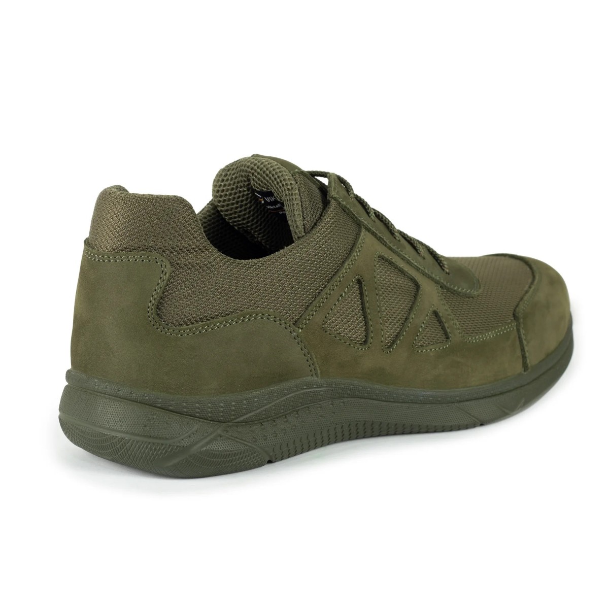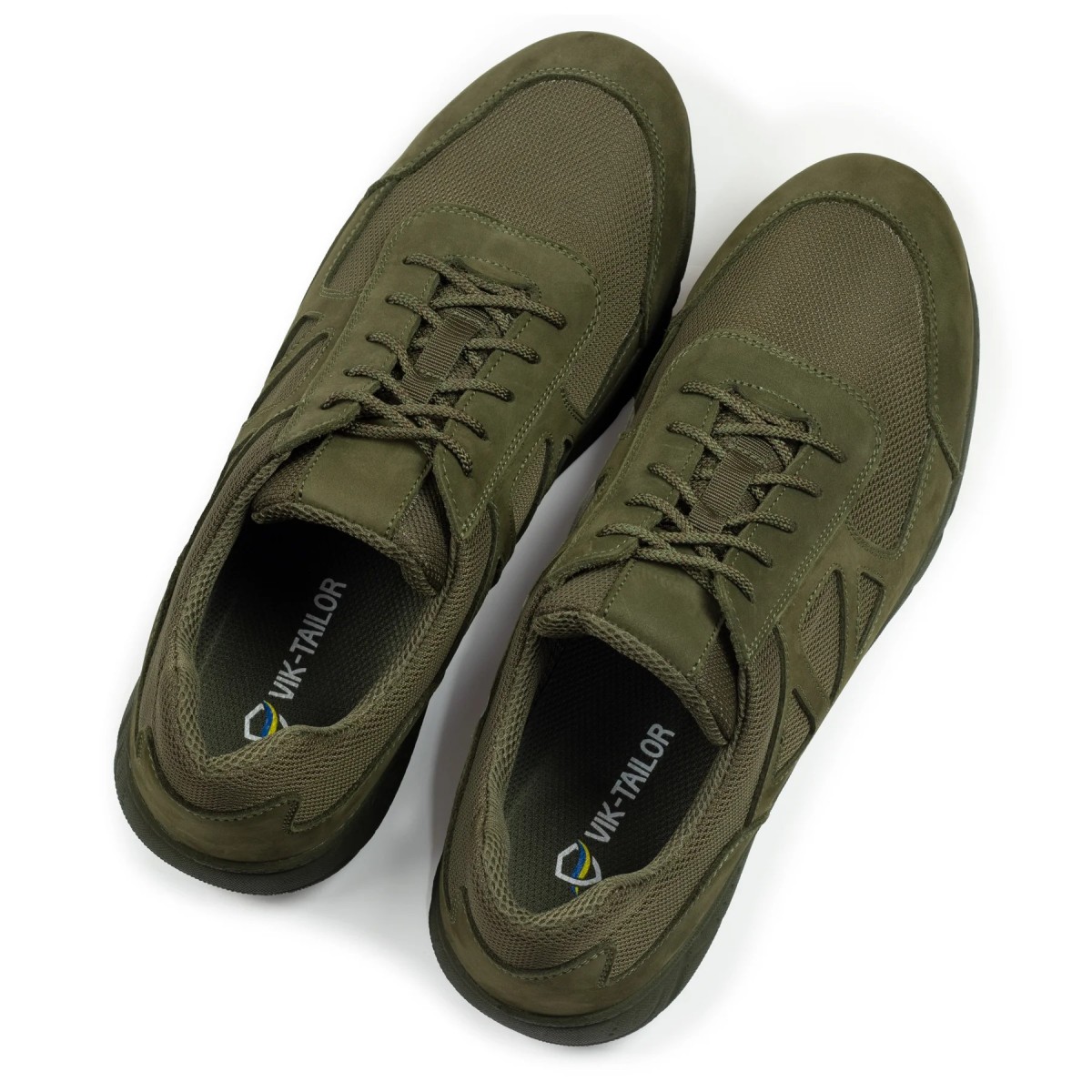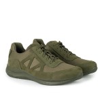 Тактические кроссовки оливкового цвета. Основной материал: высококачественный нубук из натуральной кожи. Вставки из ткани Кордура (нейлон).