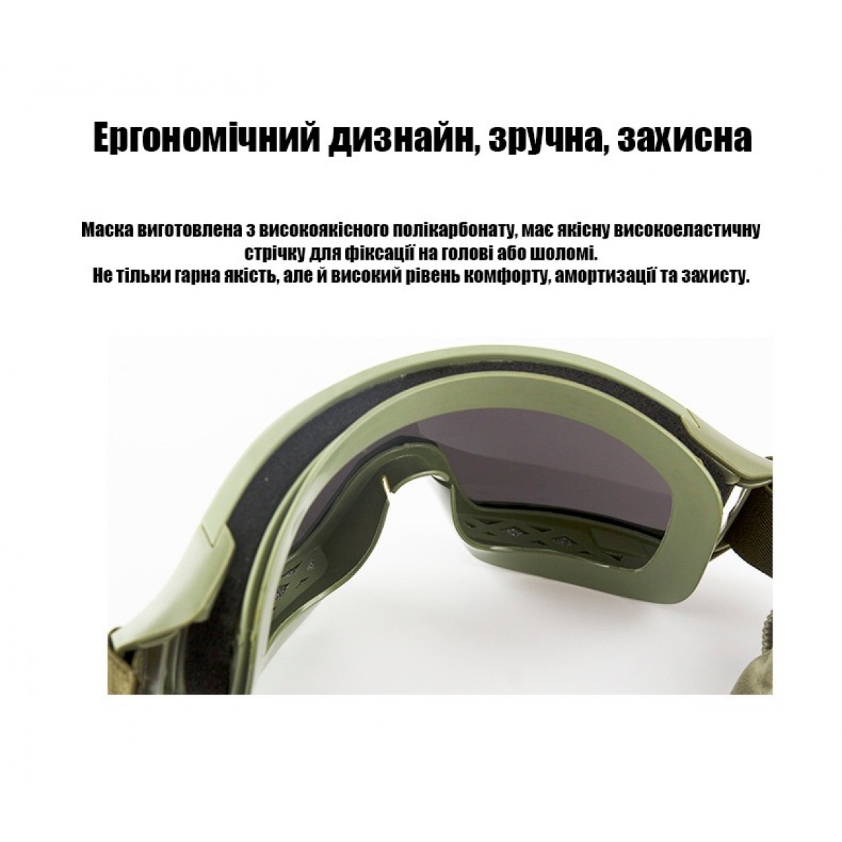 Баллистическая маска Revision Desert Locust Goggles очень удобная с широким углом обзора и незапотевающими линзами. Очки очень легкие, комфортно носятся на протяжении длительного врмени. Возможно использовать вместе диоптрическими Rx вставками. Особенности: Цвет – Foliage Green Для изготовления линз используется - оптический поликарбонат; Толщина линзы – 3 мм; Сменные линзы, что дает возможность подбирать оптимальный вариант в зависимости от освещения и погодных условий (в комплекте идет только стандартная прозрачная линза); Специально разработанная трехуровневая противотуманная система обеспечивает четкий, незапотевающий вид сквозь линзу; Покрытие OcuMax™ защищает от царапин и запотевания; Линзы выдерживают выстрел из дробовика (согласно баллистическим требованиям ANSI Z87.1-2010, EN 166 и U.S. military ballistic impact requirements for goggles (MIL-DTL-43511D, clause 3.5.10)); Круговая система естественной вентиляции обеспечивает максимальную циркуляцию воздуха. Весь поступающий внутрь воздух очищается фильтрующими вставками, задерживающими даже мелкие частицы; Очень легкие. Вес:150 гр.; Невысокий верхний профиль позволяет удобно использовать данные тактические очки вместе со шлемом; Широкий угол обзора; Рамка очков комфортно прилегает к лицу; Фиксируются с помощью эластичного ремня с регулируемой длиной.
