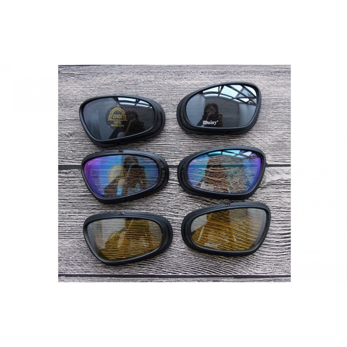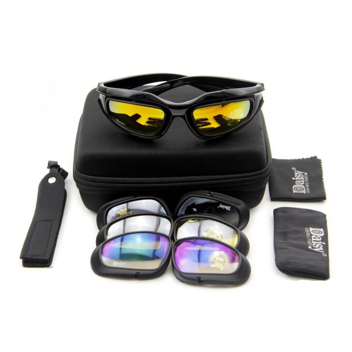 Цена тактических очков Daisy C5 (Дейзи C5) позволяет сделать это приобретение буквально каждому. Изюминкой данного продукта является то, что, по сути, вы приобретаете не одни очки, а четыре – за счет сменных линз.