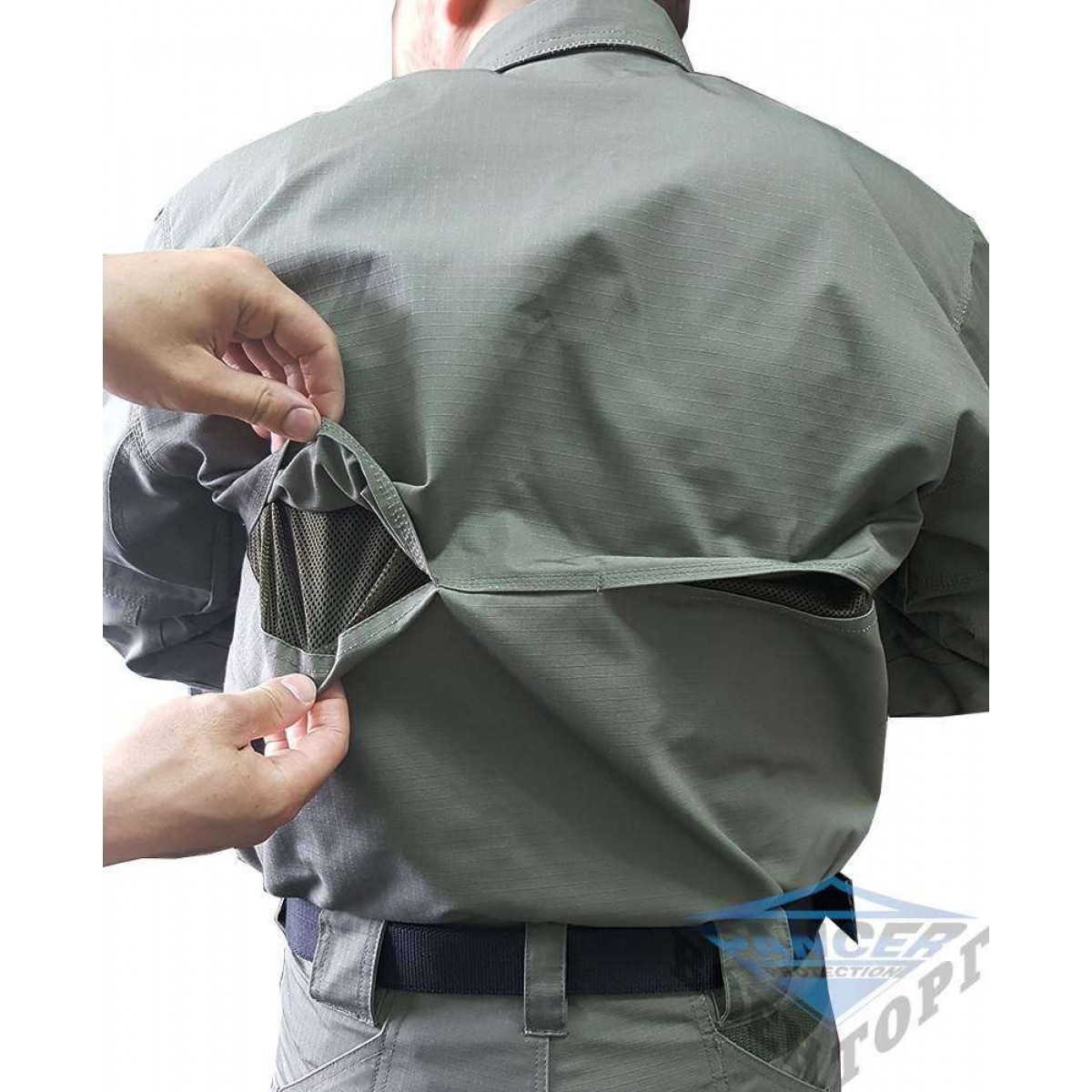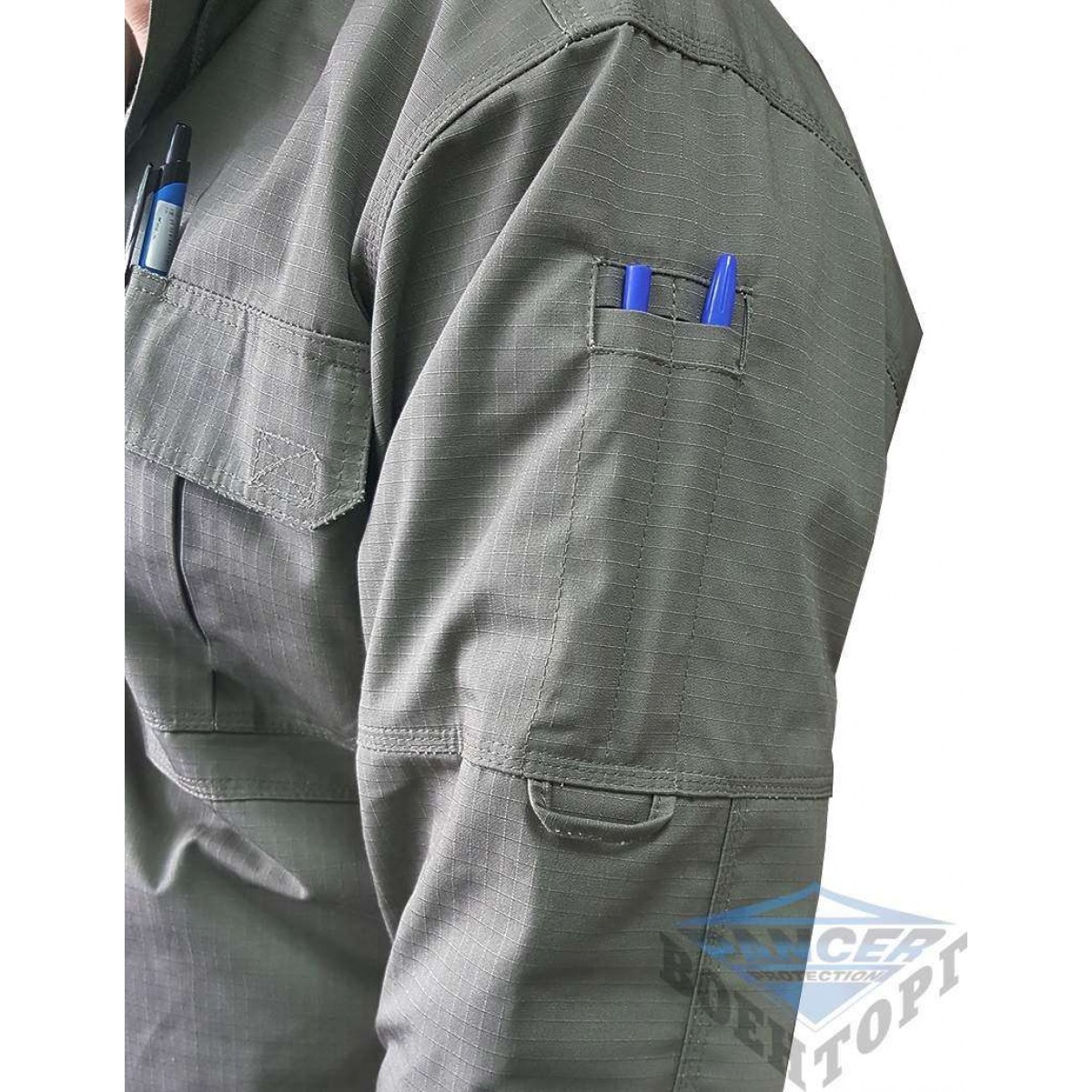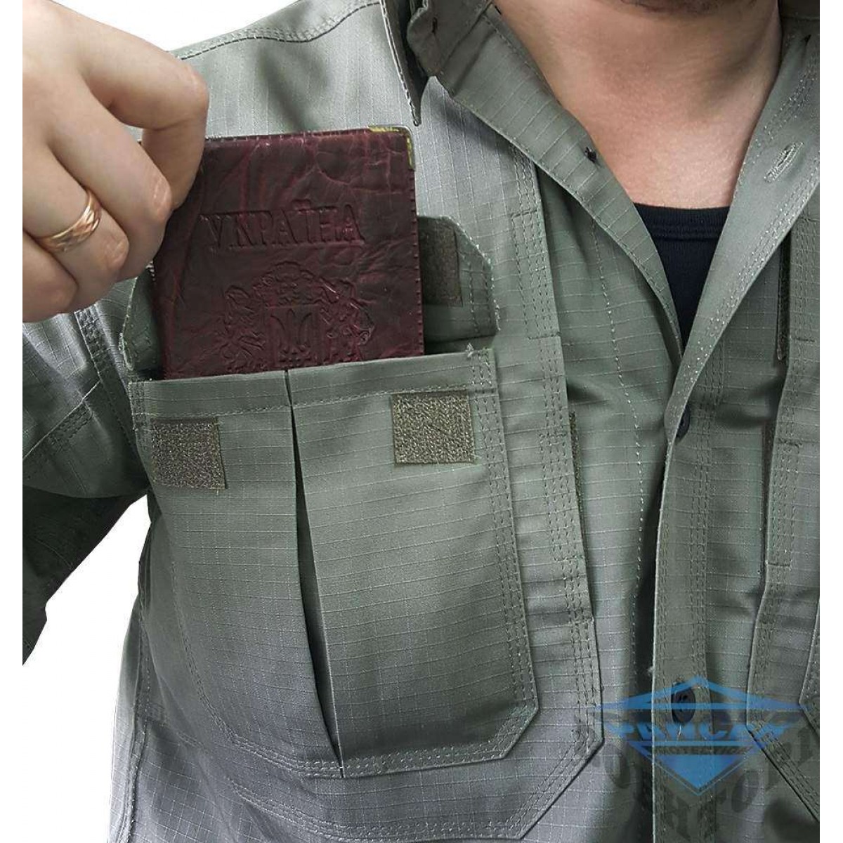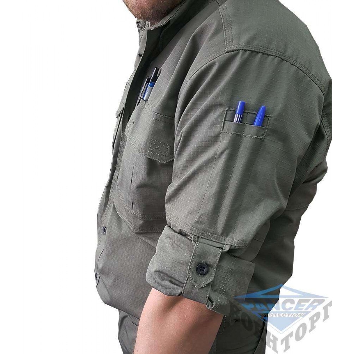 Вы больше нигде не сможете купить тактическую боевую рубашку с такими карманами: на груди имеются накладные карманы среднего размера, а прямо под ними скрытые на липучках! Их объем достаточно велик, чтобы вместить в себя средний блокнот. Помимо этих карманов есть еще узкие небольшие на рукаве – для пишущих принадлежностей.
