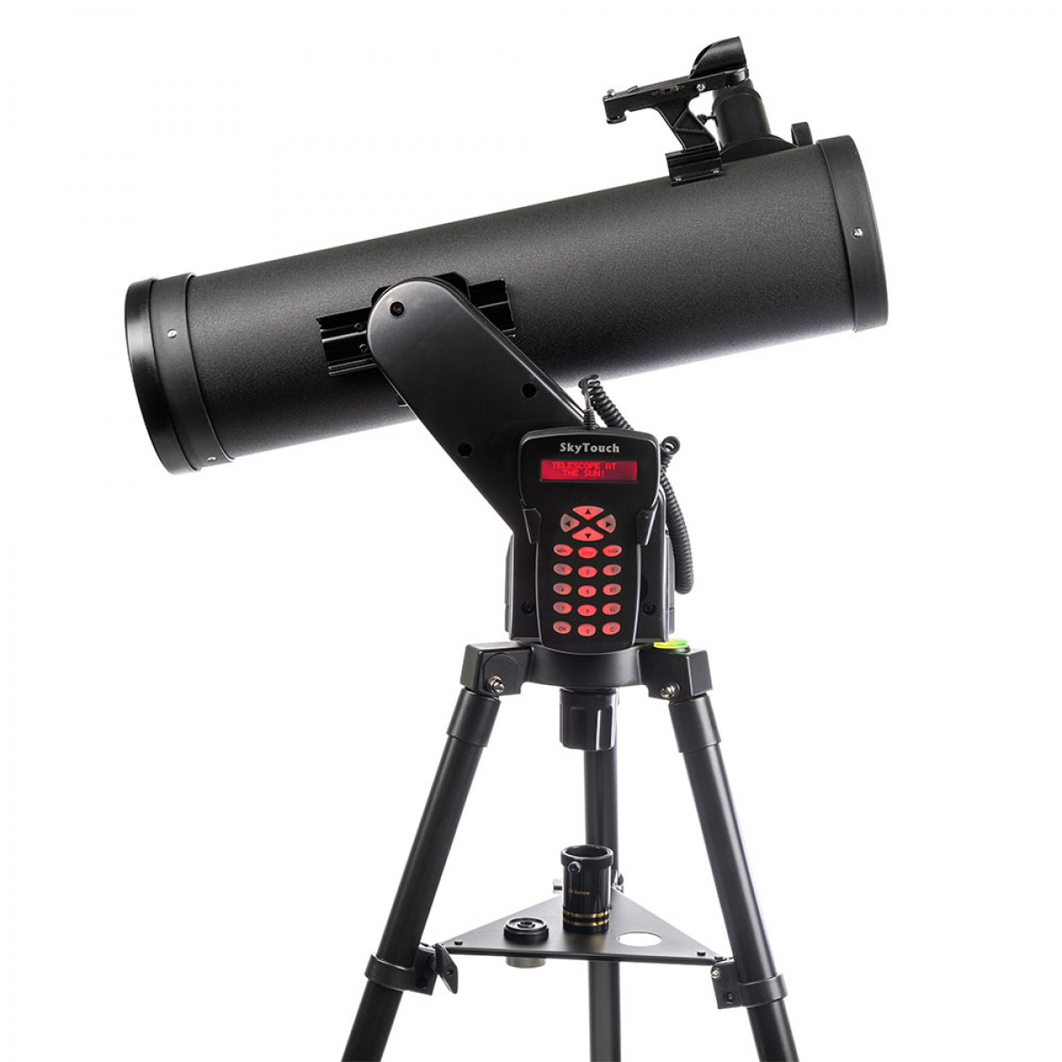 SIGETA SkyTouch 102 GoTo – зеркальный телескоп конструкции Ньютона с автоматизированной монтировкой, качественной оптикой и хорошей комплектацией. С помощью него можно увидеть более 30 000 объектов из нескольких каталогов, включая фазы Меркурия, Лунные кратеры, моря на Марсе, Уран и Нептун в виде небольших дисков.