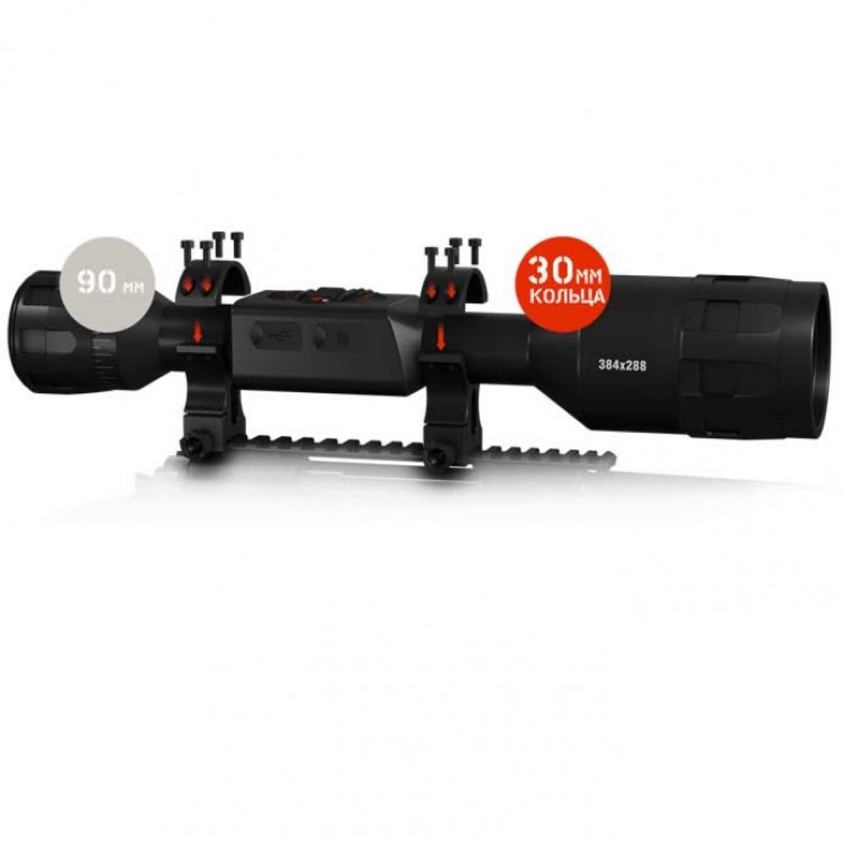 Черный корпус тепловизионного прицела ATN Mars 4 4-40 изготовлен из анодированного алюминия, а потому очень прочный и легкий. Он обладает водостойкими характеристиками, что позволит вам использовать прицел в любых погодных условиях - туман, дождь, метель и даже снежная буря ему не страшны. В верхней части оптики вы найдете компактную, но удобную для нажатия в перчатках панель управления с кнопками меню и ручкой цифрового увеличения картинки (зума) с накаткой на левой стороне. Для крепления к вашему огнестрельному оружию в комплект входят три 30-мм кольца Picatinny / Weaver: два стандартных кольца и одно консольное кольцо.