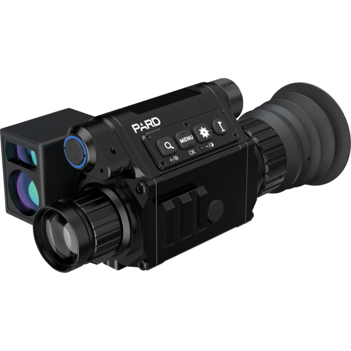 Под конец 2019 года компания Pard выпустила тепловизионные прицелы серии SA с лазерными дальномерами. Специально для близких дистанций был создан Pard SA-19 LRF. Широкий угол обзора позволяет вести наблюдение за несколькими целями одновременно. Лазерный дальномер точно определит дистанцию до объекта. Pard SA-19 LRF оснащен микроболометрической матрицей с разрешением 384х288 и величиной пикселя 17 микрон. Чувствительный сенсор улавливает даже самые незначительные тепловые сигнатуры. Частота обновления матрицы — 50 Гц. Вы можете наблюдать за целью на приличной скорости. При этом изображение честкое и детализированное. Тепловизор оснащен оптикой с фокусным расстоянием 19 мм и светосилой F1.0. Оптический зум — 1.5 крат. Также есть цифровой зум с шагом х2 и х4. Максимальное увеличение Парда — 4.5 крат. Такая оптика позволяет обнаруживать тепловые сигнатуры лося на дистанции до 1000 метров. Угол обзора на дистанции в 100 метров — 19.5° × 14.7°. Можно следить за группой целей на большой площади.