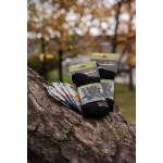 Комфорт ног не стоит недооценивать, ведь от него часто зависит эффективность операции. Поэтому и к качеству носков следует быть внимательными – они вполне способны значительно улучшить общее самочувствие бойца или усугубить его. Зимние носки от «Баллистики» специально разработаны и протестированы для работы в тяжелых полевых условиях. А их базовые преимущества можно дополнить благодаря использованию химических грелок. Выгодное предложение! Удобные наборы по 2 пары носков, 5 грелок в подарок. Особенности носков К свойствам наших треккинговых носков относятся следующие: Мягкая и тонкая шерсть хорошо сохраняет тепло даже в самые большие морозы до -20 С°, отводит лишнюю влагу и «дышит». Акрил, который характеризуется легкостью и прочностью, обеспечивает износостойкость и простоту ухода. Полиамид дополнительно усиливает выносливость материала, а эластан способствует плотной посадке на ноге. Зоны, на которые приходится наибольшее давление – пятка и мысок, – укреплены нейлоновыми нитями, поэтому эффективно противодействуют протиранию. Поэтому носки прослужат дольше. Широкая фиксирующая резинка с усиленным двойным бортом позволяет носкам удобно сидеть на голени без сползания. А горизонтальный и вертикальный бандаж надежно фиксирует изделие на ступне. Вентиляционные вставки в ключевых местах улучшают терморегуляцию. Амортизирующее махровое плетение на стопе смягчает удары во время ходьбы или бега, а это уменьшает усталость и боль в ногах после длительных переходов. Специально разработаны под высокие военные берцы. Высокая посадка обеспечивает хороший потоотвод, а также защиту голени от натирания во время рейдов. Подходят для демисезонной и зимней обуви. Особенности химических грелок Одноразовые химические грелки TakeHot удобны и просты в использовании. Они станут отличным дополнением к носкам и значительно повысят их согревающие свойства. Особенно в условиях, когда нужно выполнять длительные задания «в поле» при очень низких температурах. Они отличаются следующими качествами: Изделие имеет вид мешочка размером 7×9,5 см с липкой стороной для наклеивания в нужном месте. Передача тепла продолжается до 12 часов (зависит от способа использования и температуры окружающей среды). Следует закреплять мешочек только на одежде, а также не допускать контакта с ним электронных устройств. При необходимости можно подкладывать не только в обувь, но и в перчатки, карманы, головной убор и пр. Принцип действия очень прост: открыть упаковку, потрясти мешочек, подождать, пока он нагреется (5-10 мин), использовать. Технические характеристики носков Состав: 32% – шерсть мериноса; 48% – акрил; 15% – полиамид; 5% – эластан. Сезонность: зимние, демисезонные, демисезонные. Назначение: военные, туристические. Количество: 2 пары. Технические характеристики грелок Размер упаковки: 10×15 см. Размер грелки: 7×9,5 см. Вес упаковки: ~60 г. Состав: порошок железа, активированный уголь, вода, пищевая соль, вермикулит. Температура активированной грелки: 45-60 °С. Температура поддерживается: 8-12 часов. Мешочки на липучке, их можно фиксировать на месте. Грелка ОДНОРАЗОВАЯ. В упаковке пара грелок в герметичных мешочках.Отзывы о Комплект 2 пары зеленых носков трекинговых ЗИМНИХ 46-48 + 5 грелок для ног