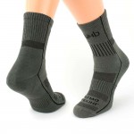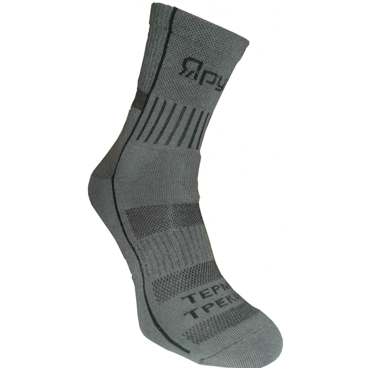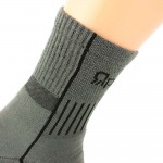 Махровые мысок и пятка с нейлоновой нитью, которая усиливает их прочность, поглощают трение, эффективно уменьшают риск образования вздутий. Плоский шов мыска не допускает натирания пальцев. Нагруженные зоны этих элементов носка прочны и длительное время не протрутся, при этом создавая своеобразный «контактный корсет» за счет использования нейлоновой нити. Фиксатор на следе носка – это зона поддержки стопы. Поперечный эластичный бандаж обеспечивает облегание, предупреждает появление складок на носке, «собирание» при ходьбе и таким образом предотвращает натирание и образование мозолей.