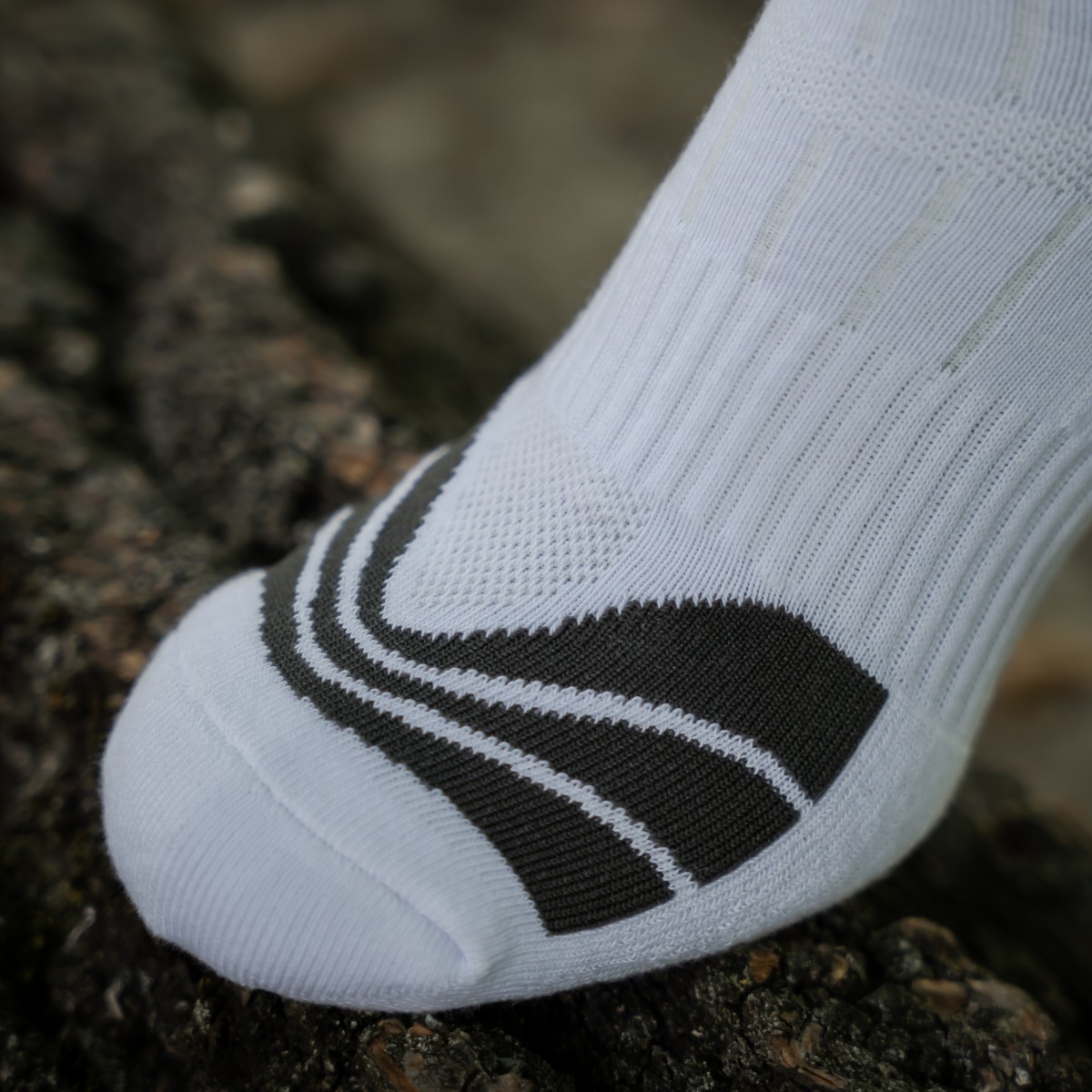 Комфорт ног – один из ключевых факторов работоспособности военнослужащих. Поэтому качество носков имеет решающее значение – они способны значительно улучшить общее самочувствие и выносливость бойца. Летние носки от «Баллистики» специально разработаны и протестированы для тяжелых полевых условий. Их комбинированный состав и особое плетение способствуют эффективному отводу влаги, поддержанию оптимальной температуры и защите от натираний и мозолей. Особенности товара К преимуществам наших треккинговых носков относятся следующие: Хлопок обеспечивает мягкость, воздухопроницаемость и быстрое поглощение влаги, полиамид – прочность и износостойкость, а эластан – плотное прилегание изделия к ноге. Участки, на которые приходится наибольшая нагрузка – пятка и мысок, – укреплены нейлоновыми нитями, поэтому эффективно противодействуют протиранию. Так что носки прослужат дольше. Широкая фиксационная резинка с усиленным двойным бортом позволяет носкам удобно сидеть на голени без сползания. А поперечный бандаж служит надежной фиксации на ступне. Вентиляционные зоны в нескольких критических местах улучшают терморегуляцию. Амортизационное махровое плетение на стопе смягчает удары во время ходьбы или бега, а это уменьшает усталость и боль в ногах. Эти носки ниже штатных, выдаваемых в ВСУ, и не так пережимают голень. Технические характеристики Состав: 78% – хлопок; 17% – полиамид; 5% – эластан. Сезонность: летние. Назначение: военные, туристические. Количество: 1 пара.Отзывы о Носки трекинговые БЕЛЫЕ "Балистика" 1 пара 46-48