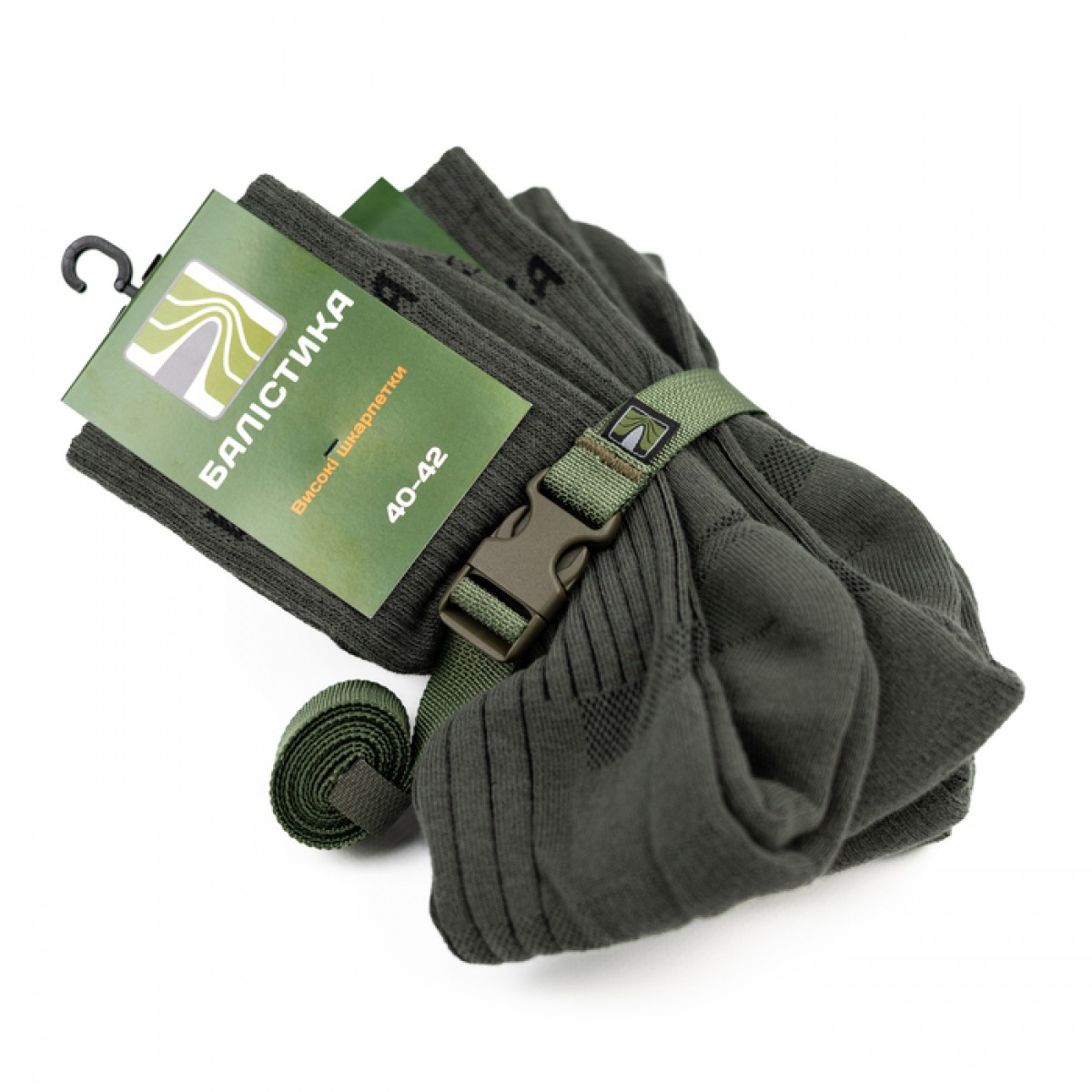 Одним из ключевых факторов выносливости для военных является комфорт ног. Поэтому ни в коем случае не пренебрегайте подбором качественных носков, которые способны существенно повлиять на ваше общее самочувствие и работоспособность. Летние носки от «Баллистики» разработаны и протестированы для использования в сложных полевых условиях. Благодаря сочетанию натуральных и синтетических волокон и особому плетению они хорошо отводят влагу, предотвращают перегревание, натирания и мозоли. Особенности товара К важным свойствам наших треккинговых носков относятся следующие: Хлопок делает их приятными на ощупь и «дышащими», полиамид – прочными и износостойкими, а эластан способствует анатомическому облеганию ноги. Зоны, которые испытывают наибольшую нагрузку – пятка и мысок, – укреплены нейлоновыми нитями для противодействия протиранию. А значит, носки прослужат дольше. Широкая фиксирующая резинка с усиленным двойным бортом способствует плотной посадке на голени и предотвращает сползание носков. В нескольких критических местах расположены вентиляционные вставки, улучшающие терморегуляцию, а удобный поперечный бандаж надежно фиксирует носок на стопе. Амортизационное махровое плетение на ступне поглощает удары при ходьбе или беге, а это уменьшает утомляемость ног. Эти носки немного ниже штатных, выдаваемых бойцам ВСУ, и не так передавливают голень. Специально разработаны под высокие военные берцы, также подходят для демисезонной обуви. Выгодное предложение! Вы можете приобрести удобные наборы по четыре пары, скрепленные стропой олива; стропа в подарок. Внимание! Цвет стропы может изменяться в зависимости от наличия на складе. Технические характеристики Состав: 78% – хлопок; 17% – полиамид; 5% – эластан. Сезонность: летние, демисезонные. Назначение: военные, туристические. Количество в наборе: 4 пары.Отзывы о Носки трекинговые ВЫСОКИЕ "Баллистика" комплект 4 пары 40-42