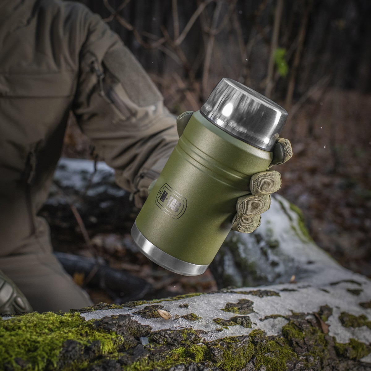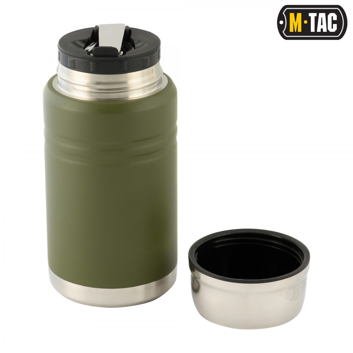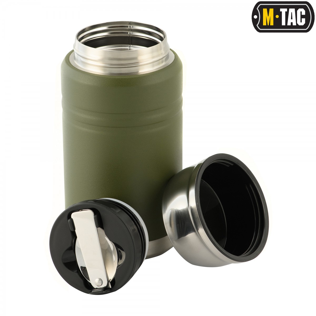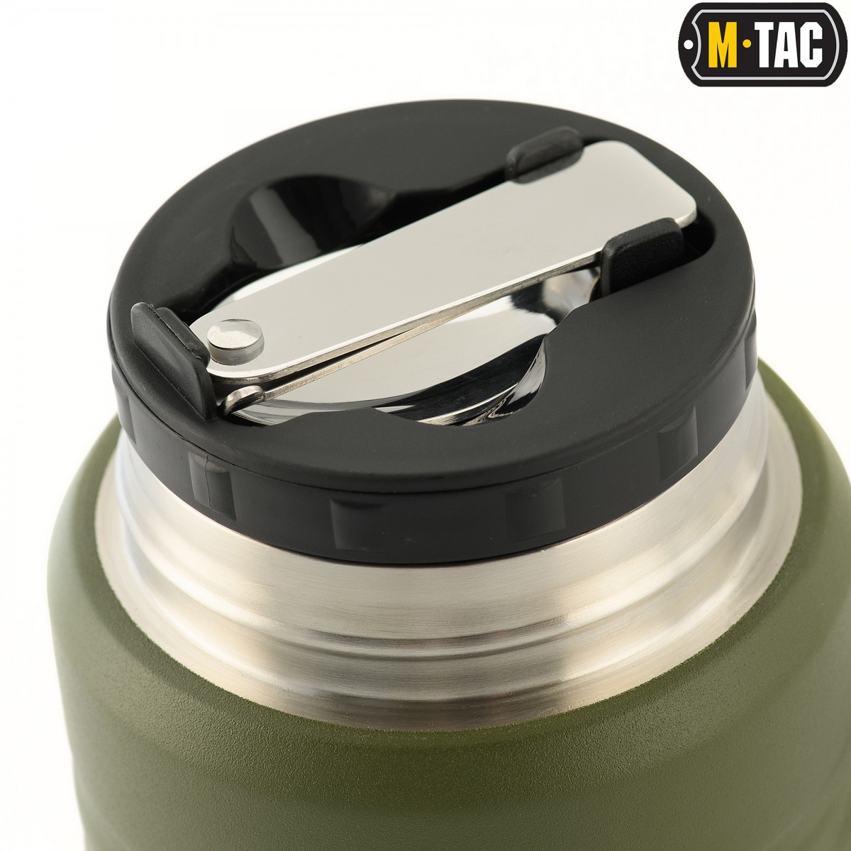 Описание M-Tac термос 750 мл со складной ложкой олива/нерж.