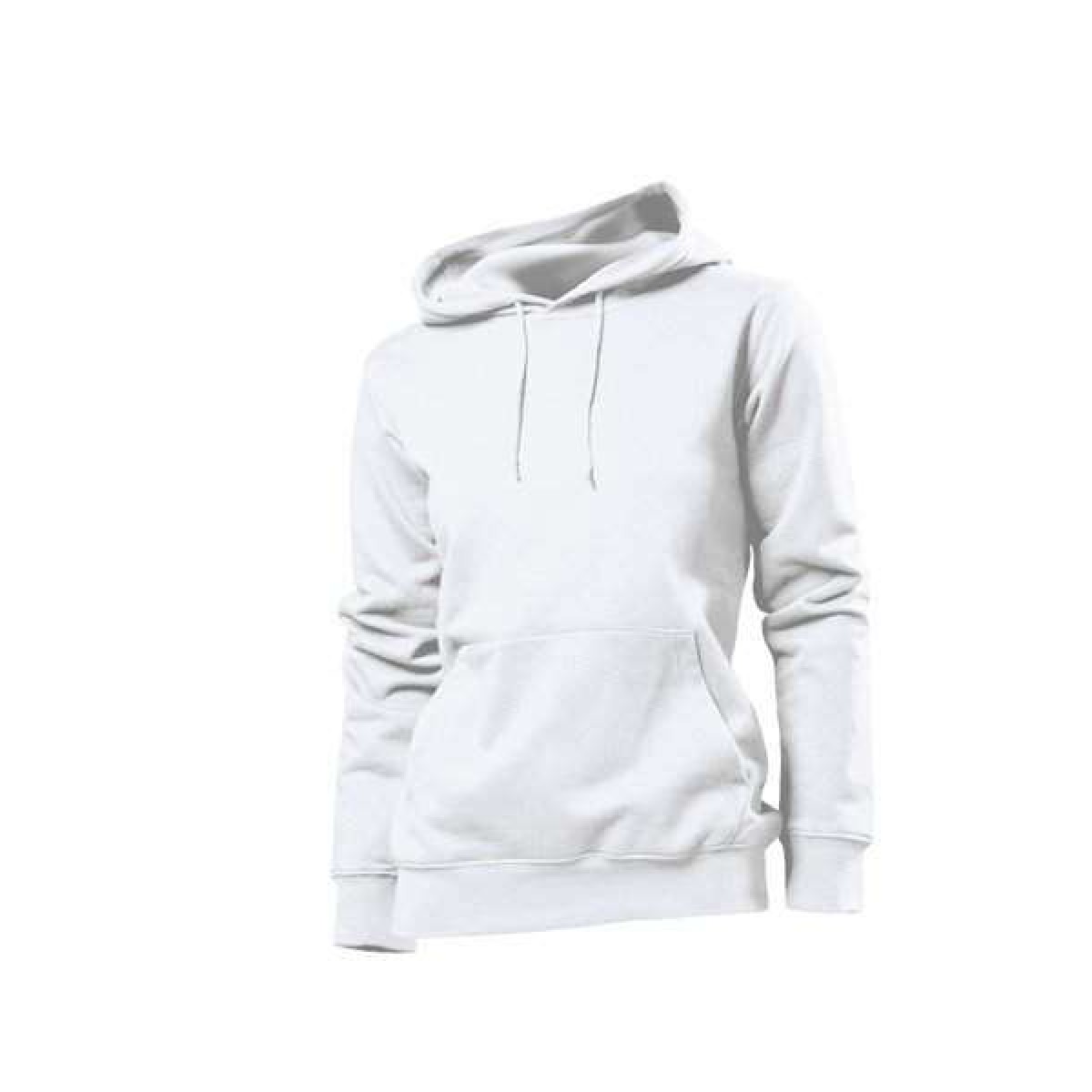Худи женское белый ST4110Прокладка для укрепления воротника, передний карман, подкладка из флиса с начесом, шнурок того же цвета, боковые швы, эластичные манжеты и пояс.