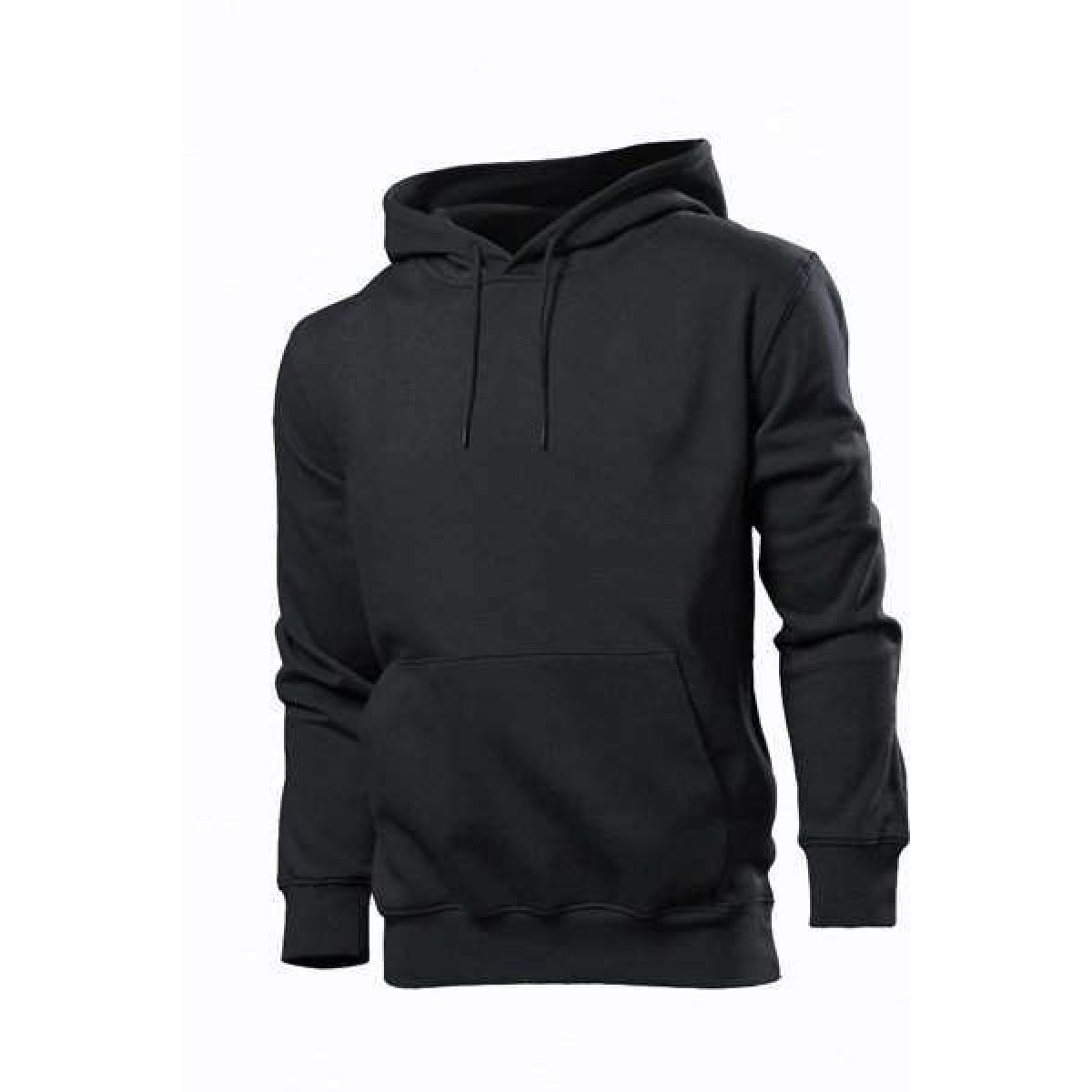 Худи мужское черный ST4100Прокладка для укрепления воротника, передний карман, подкладка из флиса с начесом, шнурок того же цвета, боковые швы, эластичные манжеты и пояс.