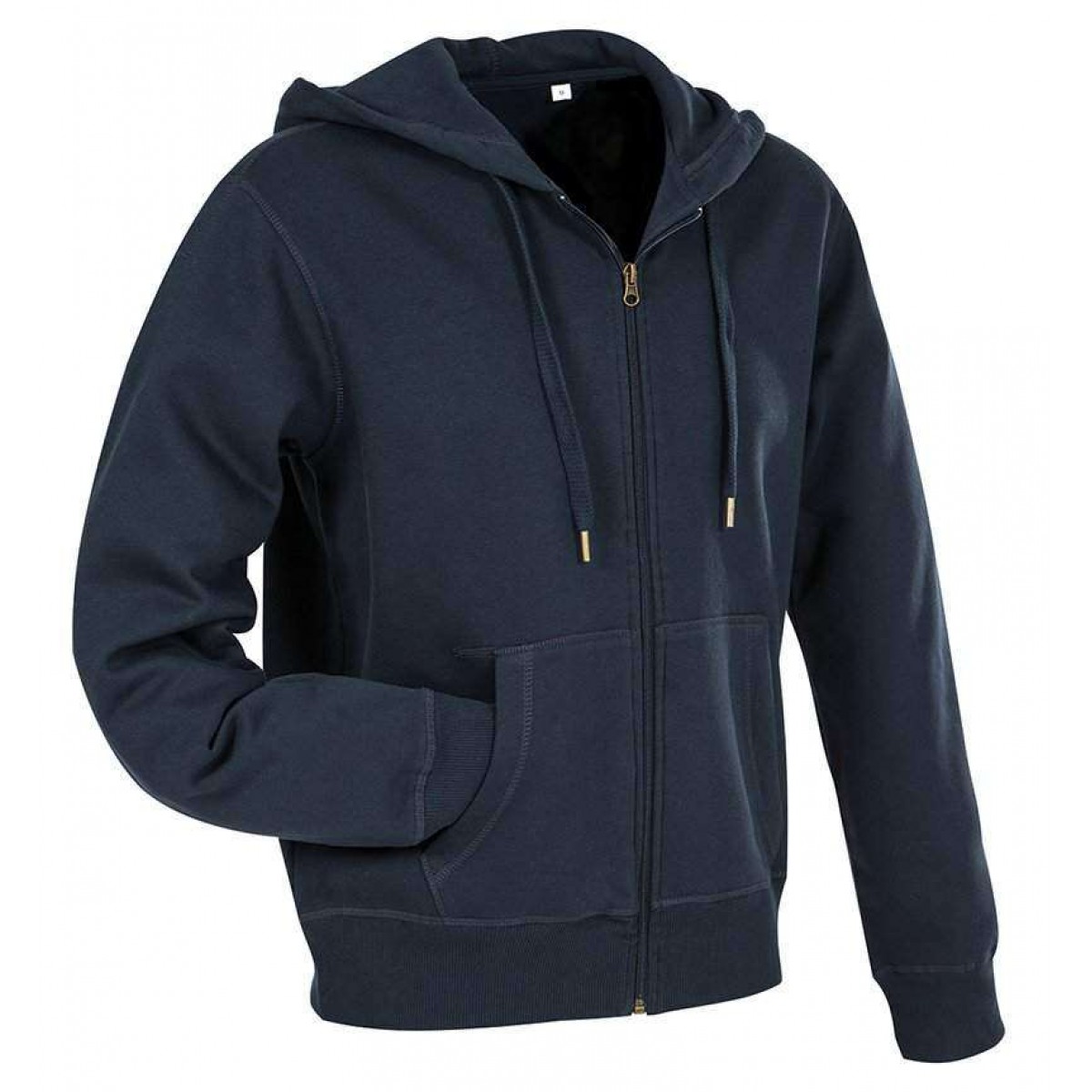 Толстовка мужская темно-синяя ST5610Боковые швы, передний карман, металлические петли для шнурка (без содержания никеля), этикетка с указаниями по уходу в боковом шве, широкий шнурок с металлическими наконечниками (без содержания никеля), двойной капюшон, внутренняя планка, отделка горловины, модные широкие манжеты "в рубчик" с эластаном по краю рукава и низу изделия, маленькая бирка с размером со стороны спины, застежка-молния того же цвета с металлическим ползунком (без содержания никеля), декоративная отстрочка, подкладка из флиса с начесом.