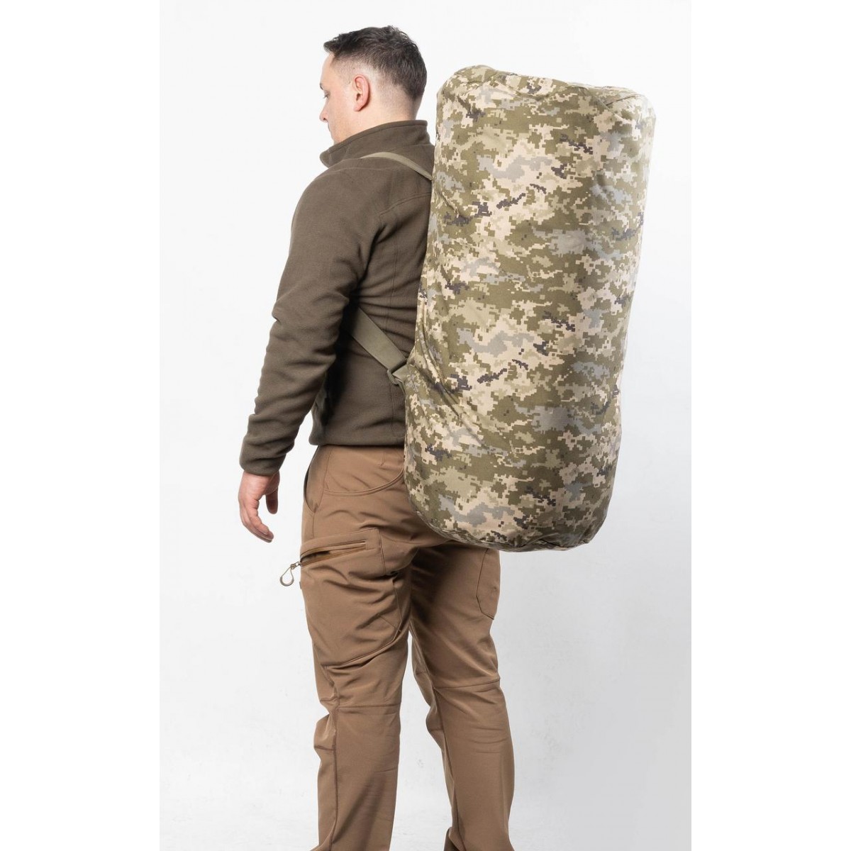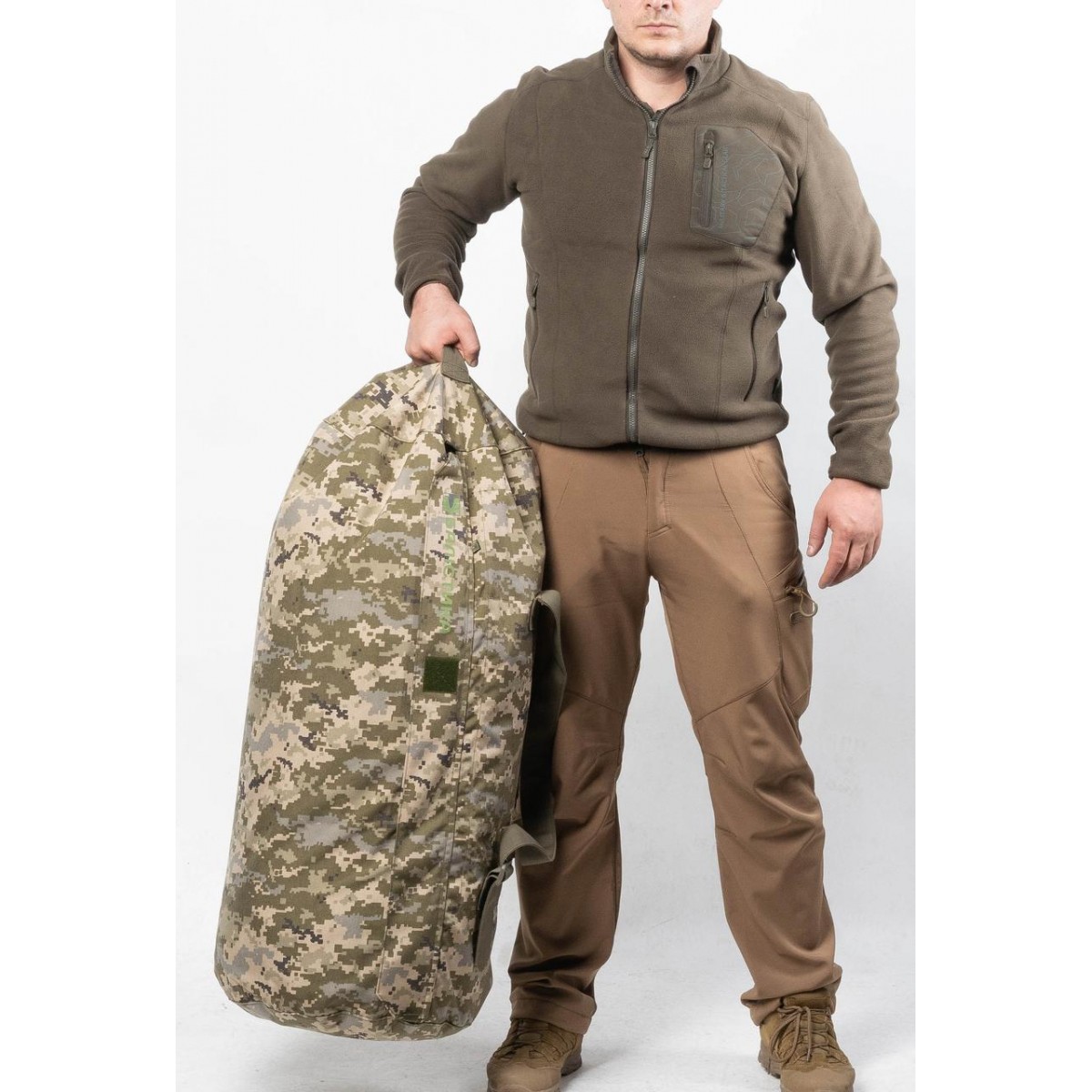 Баул – это доступная и почти незаменимая вещь в быту военнослужащих и любителей активного досуга. Баул «Баллистика» пригодится как во время службы, так и на рыбалке, охоте, в туристических походах и просто в дальней поездке. Вместительный и прочный, он отлично подойдет для хранения и транспортировки массивного снаряжения и большого количества личных вещей. Особенности товара Баул пошит из износостойкой ткани Oxford 600D с водоотталкивающей пропиткой, благодаря которой он выдержит любую непогоду. Автоматическое оборудование, на котором изготовлено изделие, гарантирует точность швов и надежность конструкции. Места наибольшей нагрузки на лямках прошиты на специальной закрепочной машине, что значительно увеличивает прочность соединения. Этой же цели служат армированные нитки, использованные для пошива, и внутренние швы, обработанные отделочной лентой. К другим качествам баула относятся следующие: Основное отделение застегивается мощной молнией (№ 10) на двух бегунках. Она прячется под широким (9 см) клапаном на липучках. Сверху на клапане также помещена липучка, предназначенная для фиксации идентификаторов. Боковая загрузка баула делает доступ к содержимому более удобным и быстрым. Так, сбросив одну лямку, боец сможет легко дотянуться до молнии и достать нужную вещь. Широкие (5 см) лямки состоят из двух слоев стропы, благодаря чему выдерживают большую нагрузку. Кроме того, они дают возможность носить баул на спине как рюкзак или в руках как обычную сумку. Их длина регулируется прочными двухщелевыми пряжками (6 см). А к баулу лямки прикреплены на две полоски той же стропы. Внутри нашиты два кармана на молнии (15×34 и 35×34 см), разделенные продольным швом. Больший отсек по бокам усилен сквозными швами на креплениях лямок, которые при этом несколько ограничивают его объем. Карманы можно использовать под документы, различные мелкие предметы, средства личной гигиены и т. п. На одном из торцов баула расположена ручка, которая делает удобным его вертикальную переноску, укладывание и вытягивание с высоких полок, багажника авто и т. д. От баула «Компакт» это изделие отличается отсутствием внешнего кармана, в который он складывается, как в сумочку. Технические характеристики Материал: Oxford 600D. Стропа: нейлон, 5 см. Объем: 105 л. Диаметр: 38 см. Длина: 84 см. Вес: 697 г. Грузоподъемность: 30 кг.Отзывы о Баул "Баллистика" 105л (Оксфорд 600Д) (ММ14)