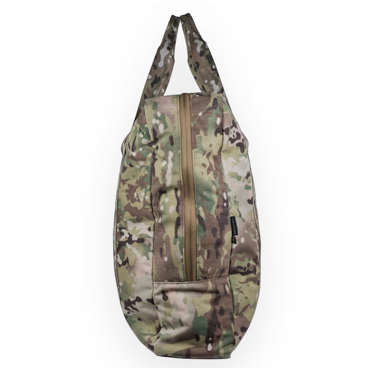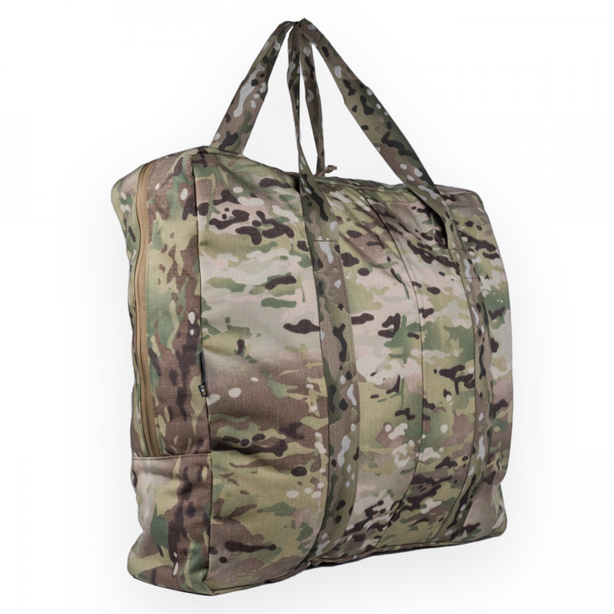 Неотъемлемым элементом военной амуниции является сумка. «Баллистика» разработала практичный и надежный вариант, который поможет хранить и транспортировать необходимое снаряжение и личные вещи. Изделие имеет универсальный дизайн, который подходит не только для военных задач, но и для туристических походов. Легкое и одновременно прочное, оно не занимает много места в сложенном виде и в случае необходимости станет дополнительным вместилищем для хранения в дороге. Особенности товара Благодаря продуманной конструкции и использованию износостойких материалов сумка сочетает высокую прочность, удобство в использовании и долговечность. К ее главным преимуществам следует отнести следующие: Изготовлена из плотной синтетической ткани с водоотталкивающим покрытием. Имеет большое верхнее отверстие на молнии и широкое раскрытие (2/3 ее высоты). Содержит основное отделение и два больших внутренних кармана, которые прикрываются клапанами на липучках велкро. Складки на боковинах карманов обеспечивают дополнительный объем и позволяют размещать в них больше вещей без потери формы сумки. Жесткие лямки не регулируются, однако позволяют удобно носить сумку на плече даже при максимальной нагрузке. Они нашиты на нее до самого дна, чем улучшают ее устойчивость к разрывам. Мощная молния с двумя бегунками гарантирует долговечность и выдерживает тяжелые условия эксплуатации. Внутренние швы усилены отделочной лентой, а при пошиве использованы прочные армированные нити. Технические характеристики Материал: Cordura 1000D. Стропа: полиамид, 5 см. Размер: 62,5×56×16,5 см. Карманы: 33×55 см. Вес: 670 г. Объем: 57 л.Отзывы о Сумка "Торба" для бронежилета (Мультикам)